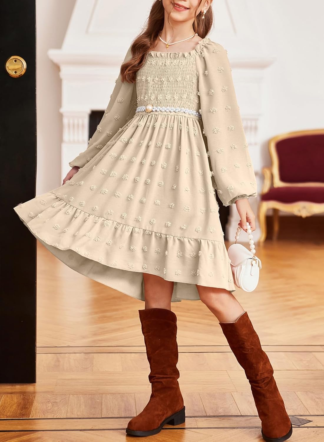 blibean Girls 2025 Fall Dresses Long Sleeve Polka Dots Pockets Dress Size 6-15 Years