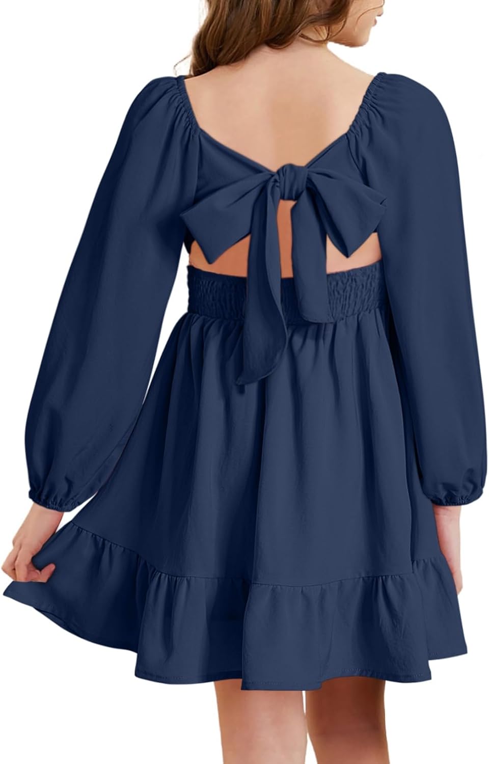 blibean Girls Long Sleeve Tie Back Dress Tween Fall Off Shoulder Dress Size 6-15 Years