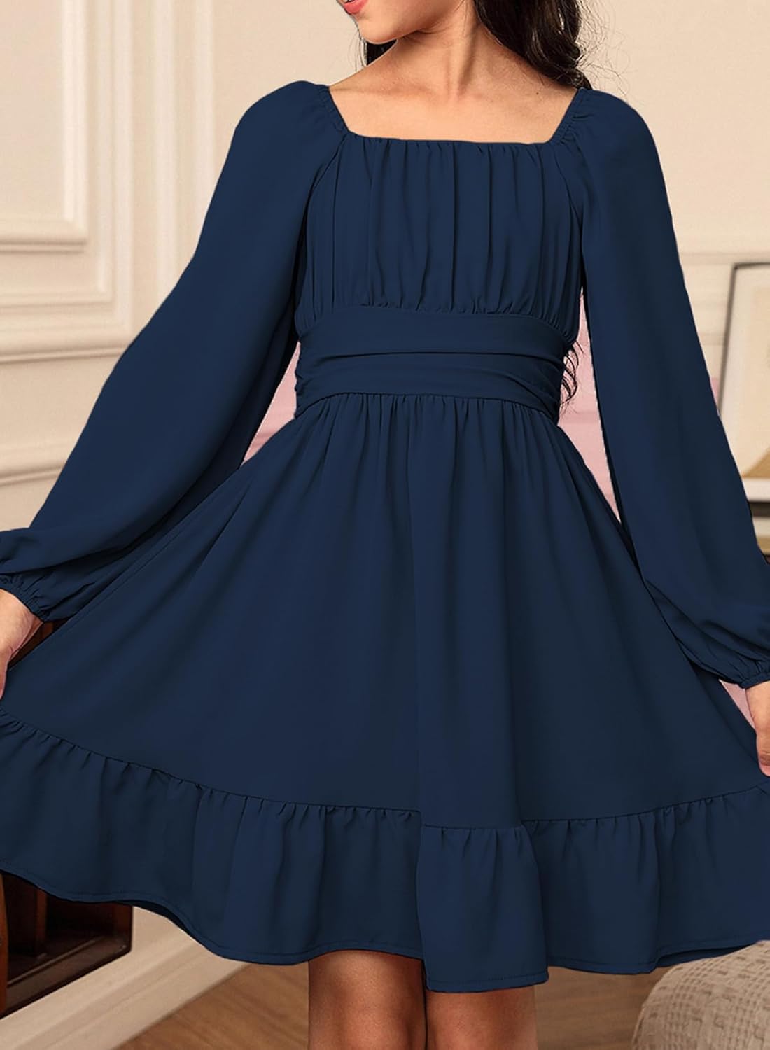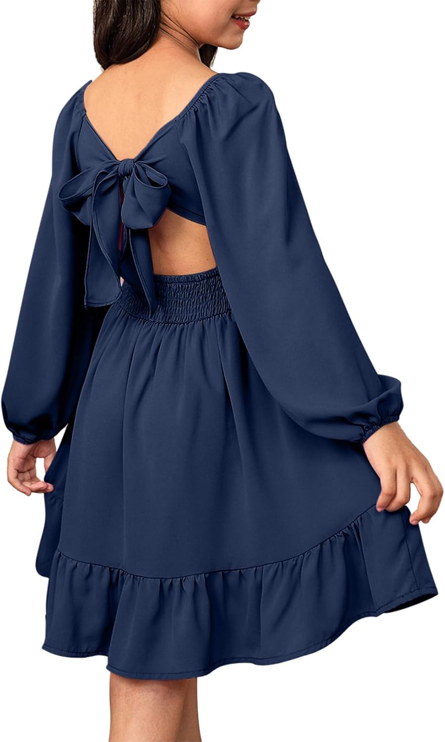 The video showcases the product in use.The video guides you through product setup.The video compares multiple products.The video shows the product being unpacked. blibean Girls Fall Long Sleeve Tie Back Dress Merchant Video