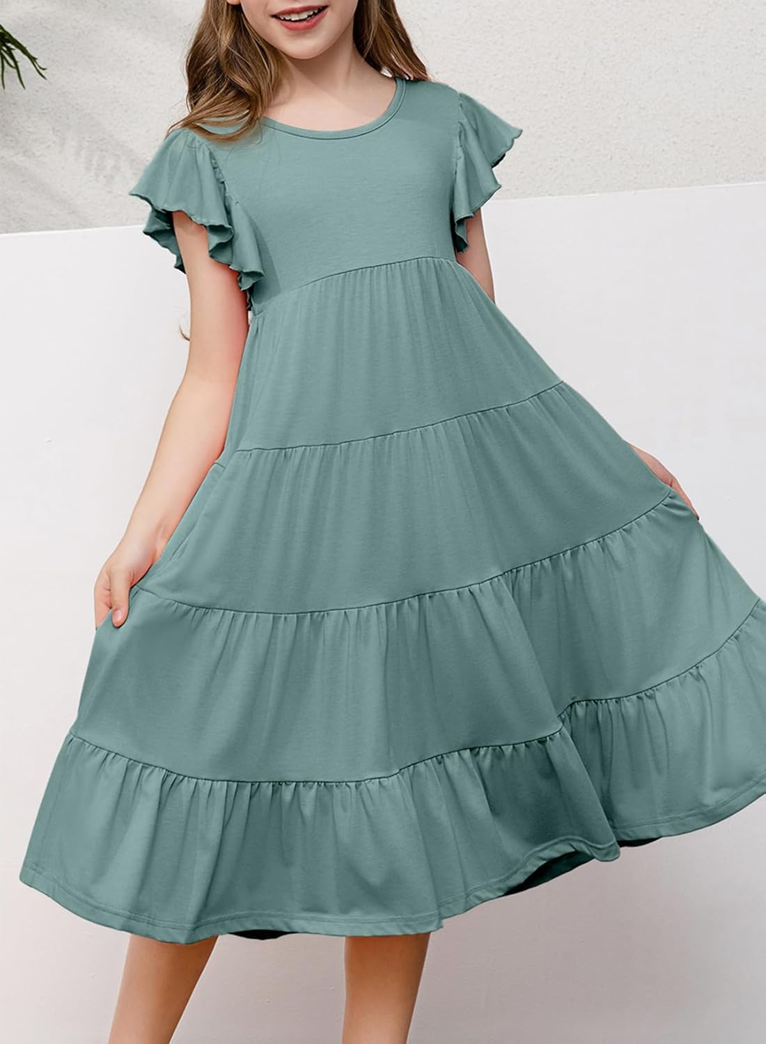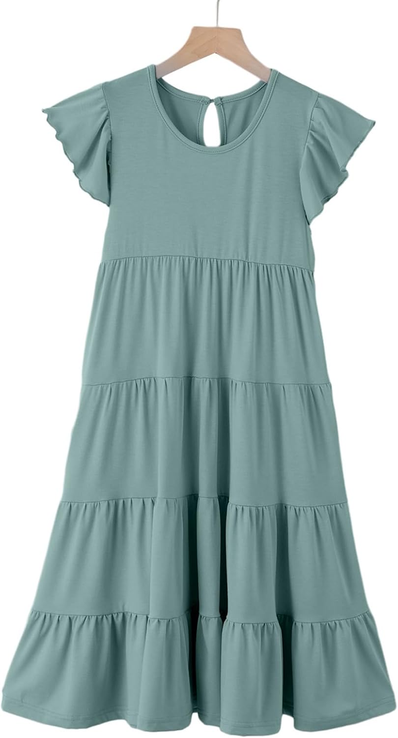 blibean Girls Summer Boho Sun Dress Tween Ruffles Tiered Dresses Size 6-15 Years