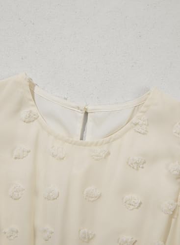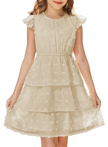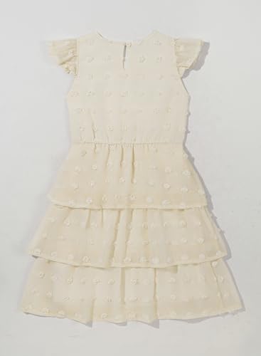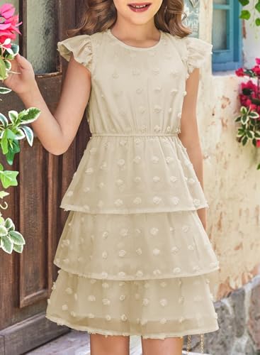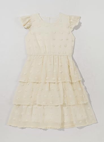 blibean Girls Summer Dress Tween Girl Sundress Flower Boho Spring Dresses Big Kids Chiffon Ruffle Short Sleeve Formal Clothes Party Swiss Polka Dots Vestidos Niñas Size 14 15 16 Years Old Cream