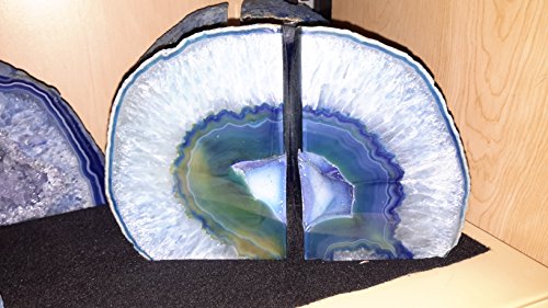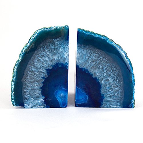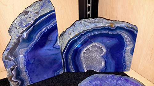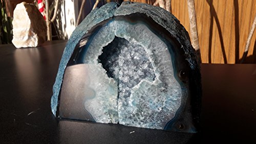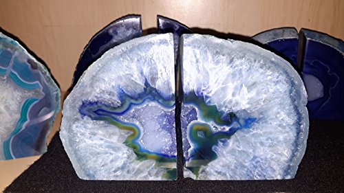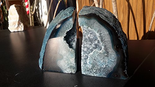 Blue Agate Quartz Geode Book Ends – Made from The Finest Grade Brazilian Agate