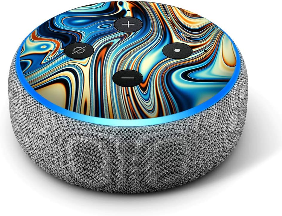 Blue Oragne Psychadelic Oil Slick – Vinyl Decal Skin Compatible with Amazon Echo Dot 3rd Generation Alexa – Decorations for Your Smart Home Speakers, Great Gift for mom, dad, Birthday, Kids