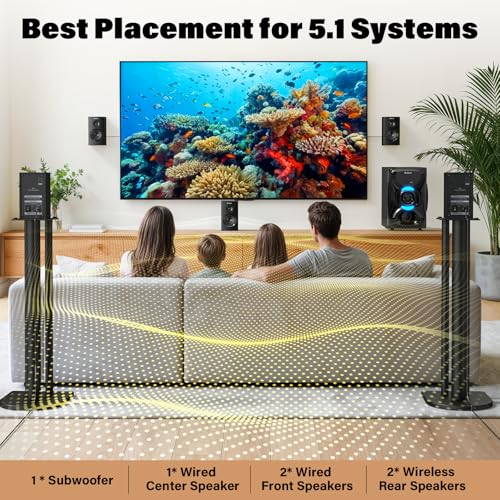 5.1 Channel Surround Sound Speakers: With the 360° Aural enjoy design, the 5.1 home theater surround sound systems ensure you’re immersed in the story, wherever you sit. Featuring two modes, 5.1 and 2.1 channel, easily switch between them using the convenient remote control or the front panel on the subwoofer. With the pro surround function, elevate your sound enjoyment to a whole new level for home theater sound system.