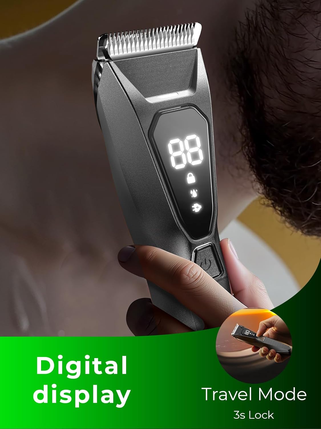 Fast Charging & Travel‑Ready:Power up quickly with USB-C charging, delivering a full charge in 1.5 hours for 90 minutes of cordless use. The LED battery display shows real-time power levels, and the travel lock ensures safe packing—your reliable companion for trips and daily grooming