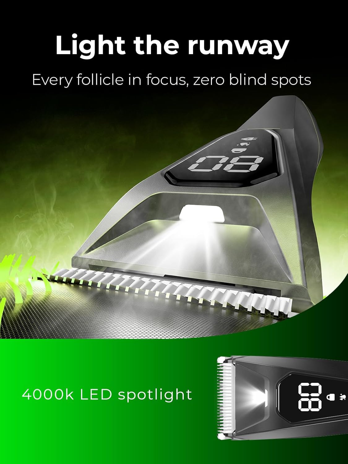 Smooth, Irritation‑Free Shaving:Engineered with ceramic blade technology, our men’s body shaver glides smoothly without tugging or irritation. The built-in 4000K spotlight illuminates every contour, while a powerful motor leaves skin feeling smooth and bump-free