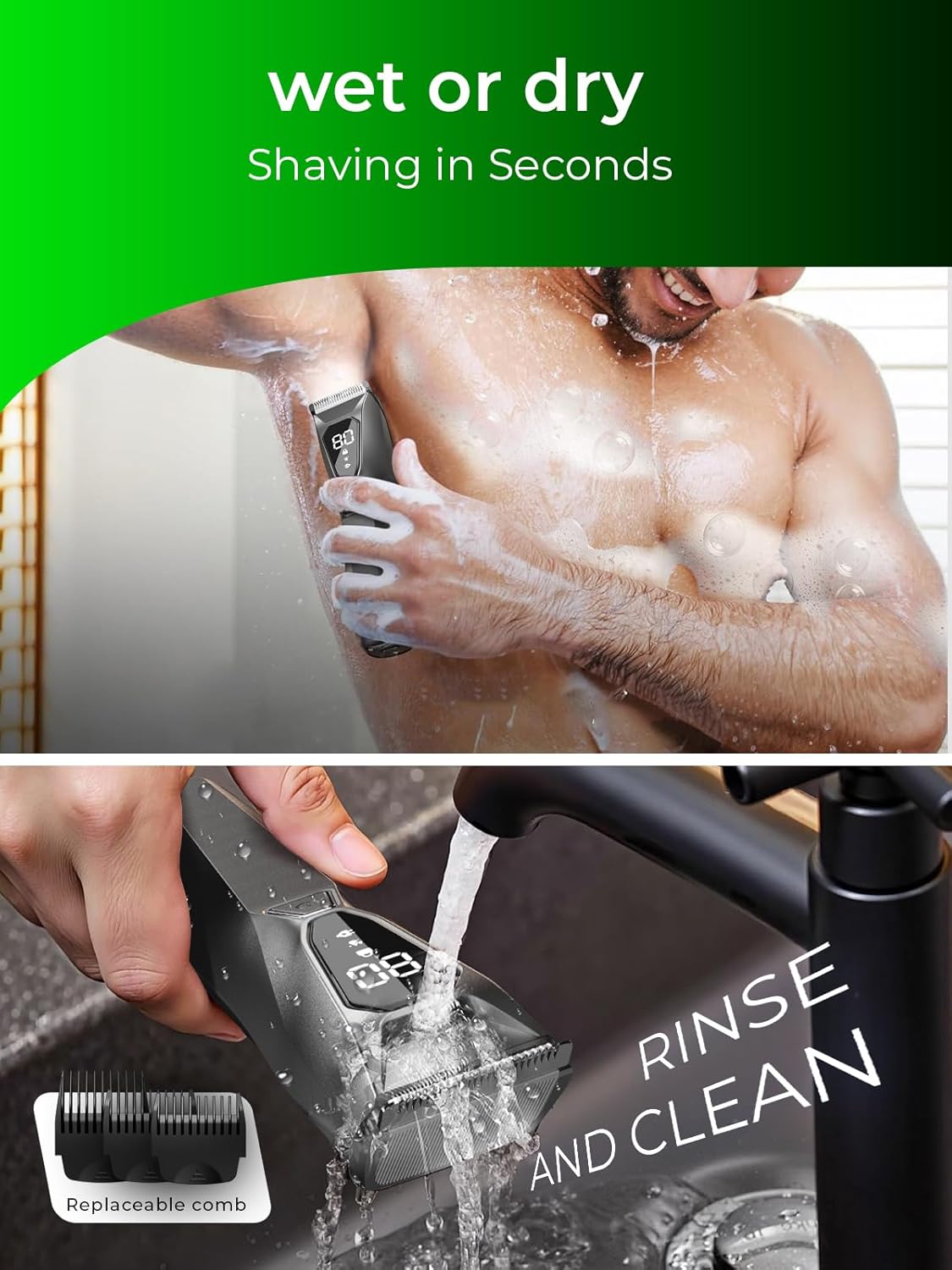 Waterproof & Easy‑Clean Design:IPX7 waterproof rating makes this trimmer safe to use in the shower and easy to rinse under running water. The durable, sealed construction and detachable blade unit allow for quick and thorough cleaning after every use