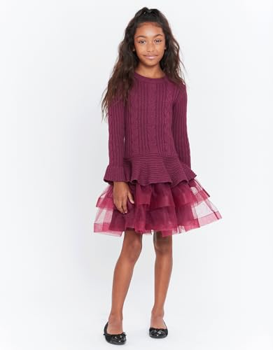 Bonnie Jean Chunky Cable Knit Sweater Dress with Tutu Skirt for Kids | Matching Sister Outfits for Infants, Toddlers, and Girls – Long Sleeve Sweater Dress for Winter, Holidays, and Concerts