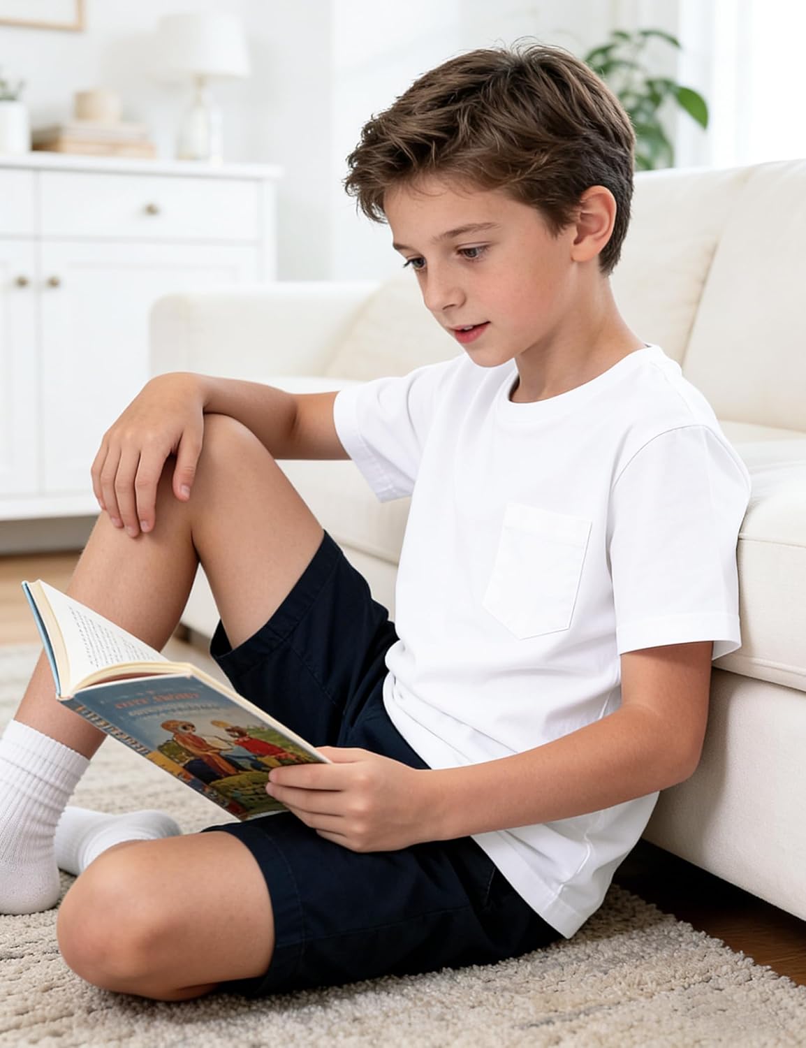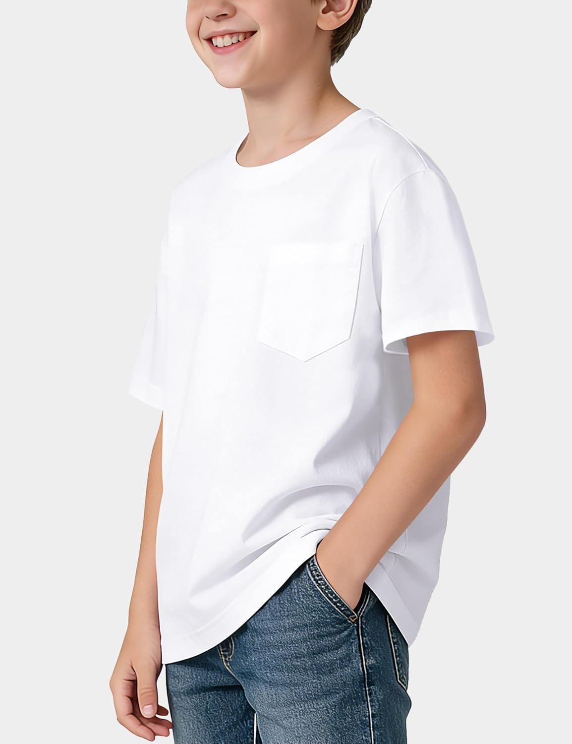 BOOPH Boys T-Shirts Kids Short Sleeve Shirts Basic Tshirts Crewneck Tee Tops with Pocket 5-14Y