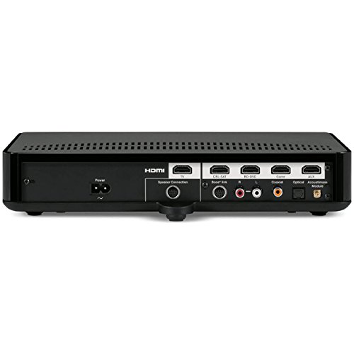 Soundbar speaker:4.9″ H x 36.8″ W x 2.4″ D (7.8 lbs) ; Acoustimass module:11.3″ H x 7.6″ W x 14.8″ D (13.8 lbs) Control console:2.5″ H x 12.3″ W x 8.2″ D (3.28 lbs) Remote:8.8″ H x 2.1″ W x 1.2″ D