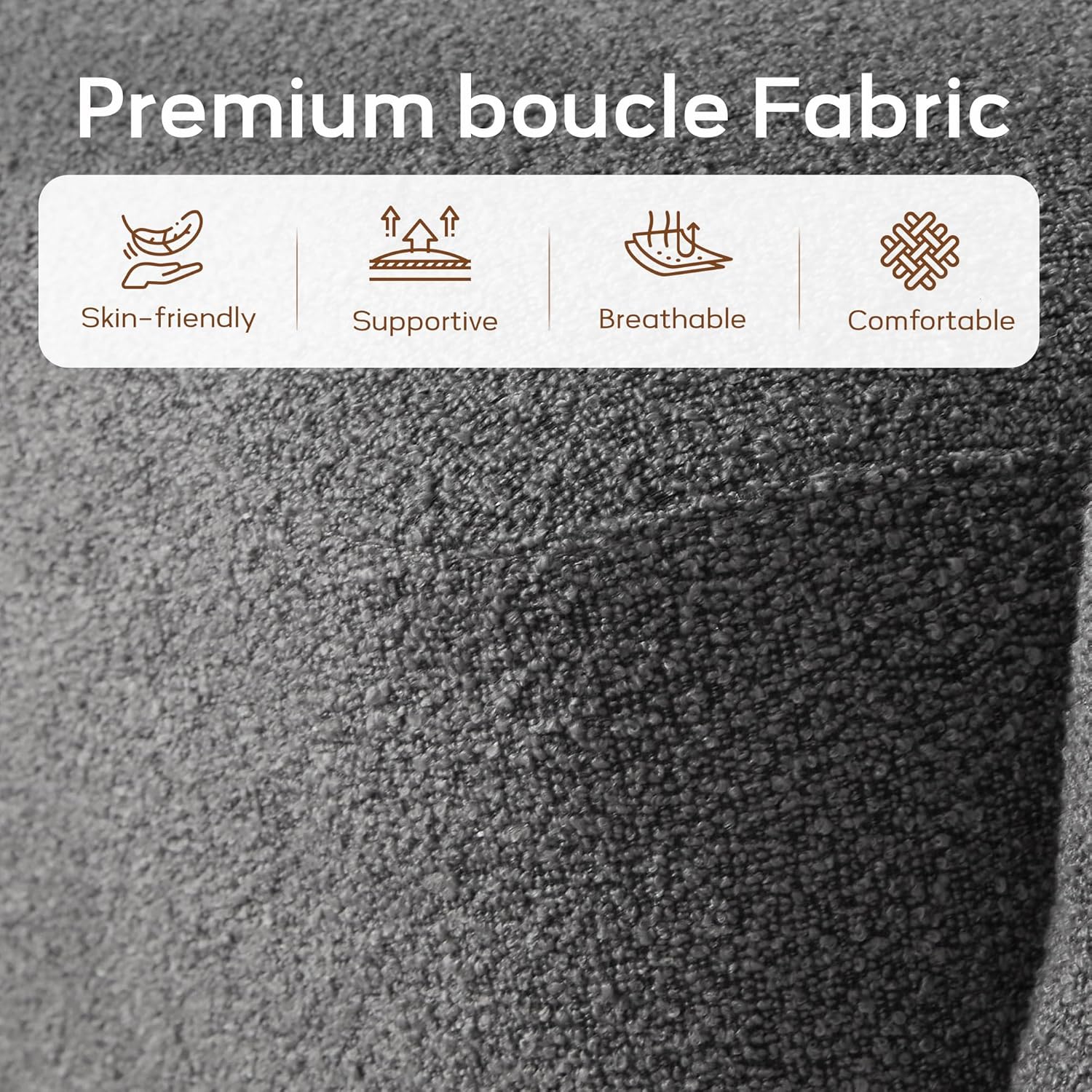 Sink into the luxuriously padded seat, wrapped in soft bouclé for a cozy and timeless touch