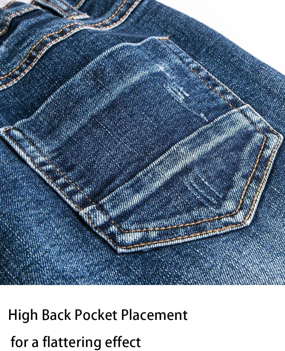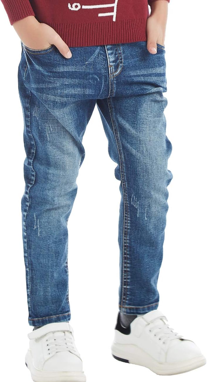 Boys’ Denim Jeans, Ribbed Elastic Waist Cotton Pants for Kids