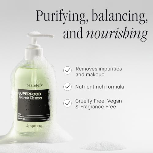 Brandefy Holiday Luxe Essentials Set – Superfood Nourish Cleanser, No Needles Renew Serum, Clinical Vit C + E + Ferulic Defend Serum and Tri Lipid Replenish Treatment
