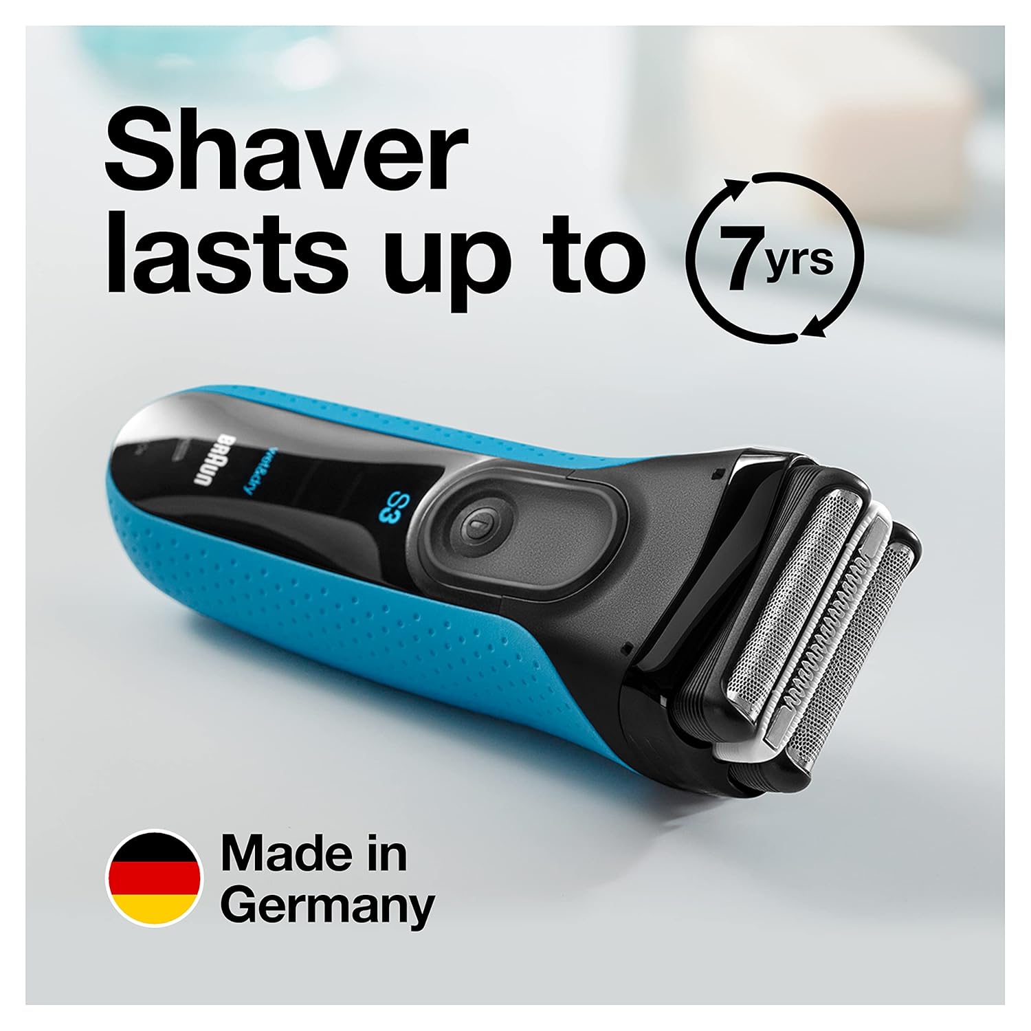 Braun Electric Series 3 Razor with Precision Trimmer, Rechargeable, Wet & Dry Foil Shaver for Men, Blue/Black, 4 Piece