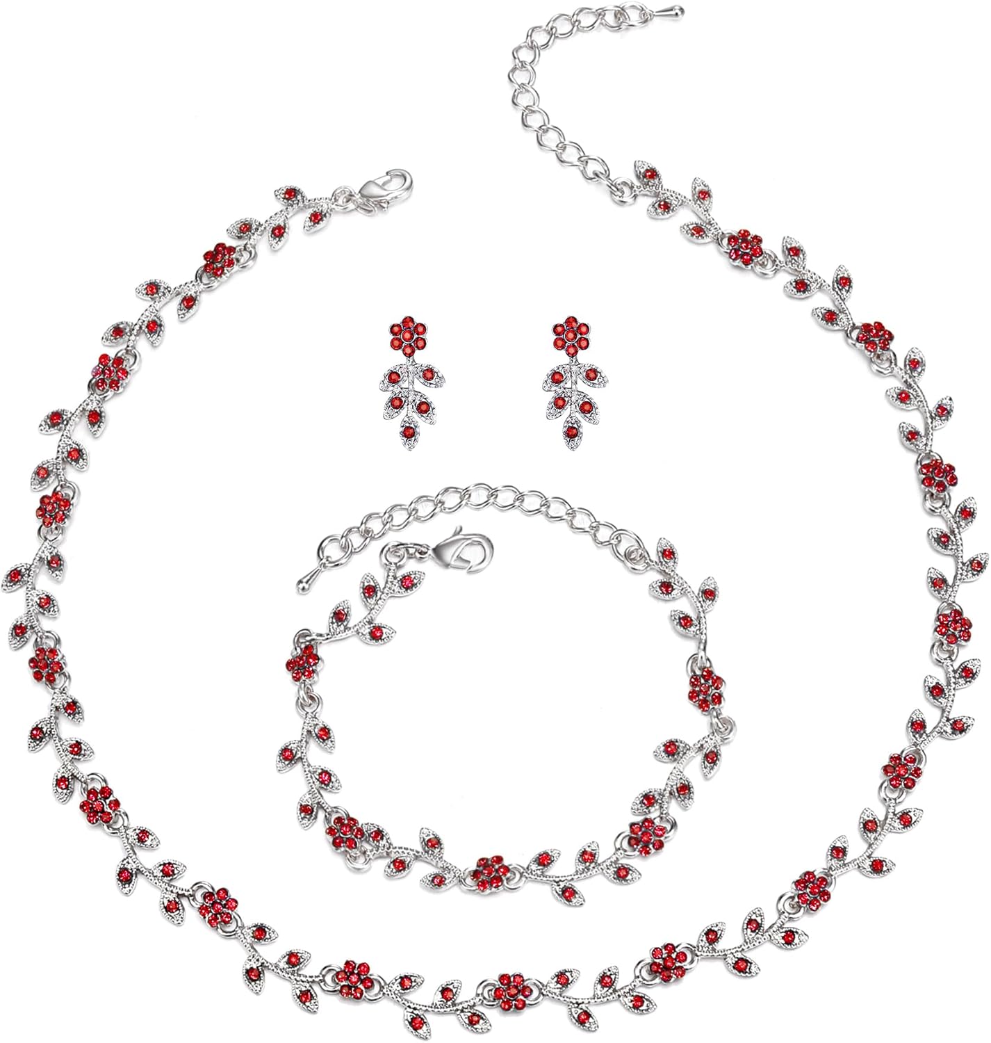 BriLove Wedding Jewelry Set for Women Bride, Gorgeous Stunning Crystal Flower Leaf Cluster Choker Necklace Link Bracelet Stud Earrings Bridal Bridesmaid