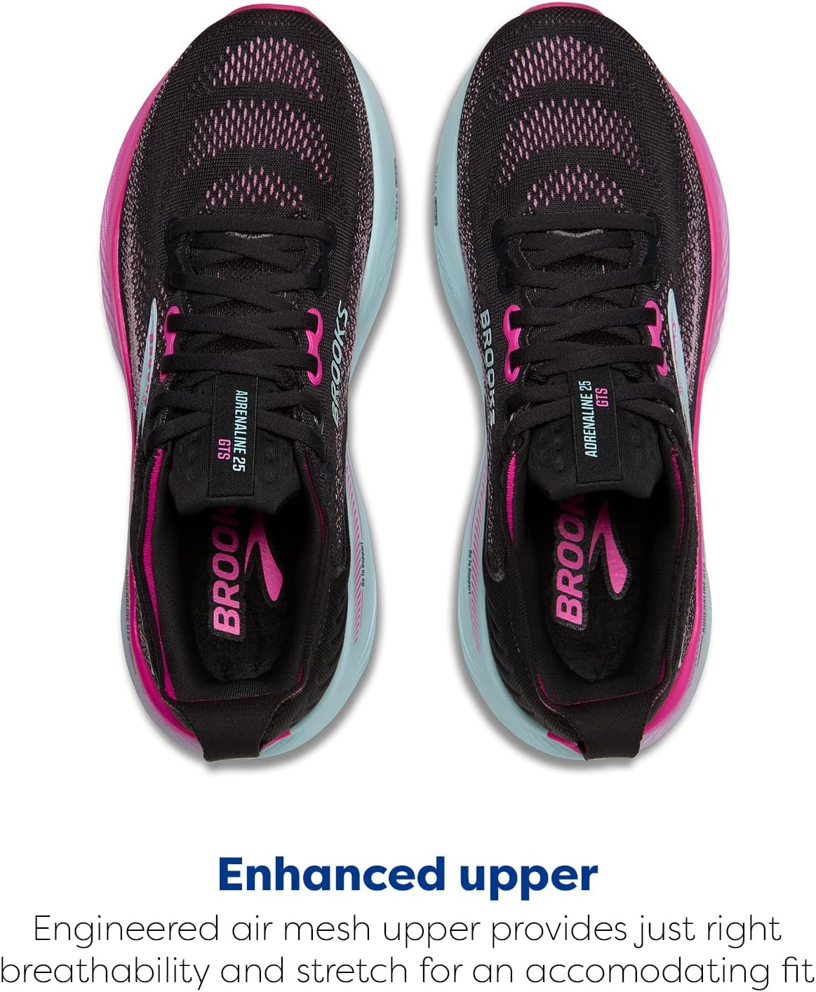 The Brooks Adrenaline GTS 25 shoe features a 3 mm of added DNA LOFT v3 cushioning in the forefoot and 1 mm in the heel, enhancing comfort and responsiveness. The nitrogen-infused DNA LOFT v3 midsole delivers lightweight softness and dynamic energy return, while the GuideRails support system helps reduce excess movement from heel to knee, promoting a smoother stride. The shoe’s engineered mesh upper and flatknit collar offer a secure, breathable fit, making it ideal for runners seeking a balance of support and plush cushioning. With its 10 mm offset, the Adrenaline GTS 25 maintains the trusted geometry of its predecessors while improving underfoot feel for distraction-free miles. Nylon lining and ethylene vinyl acetate insole. PDAC A5500 Approved: Pricing, Data Analysis and Coding A5500 Diabetic Medicare Coding is awarded to footwear that is available in three or more widths, with a removable insole (sock-liner). These attributes may allow a footwear style to be deemed an extra-depth shoe. It also allows individuals to pay for their footwear through their Medicare. PDAC must be applied for on a yearly basis and is not automatically available to styles that meet its criteria. For more specific info, visit the Medicare website or call 1-800-MEDICARE. APMA Approved: The American Podiatric Medical Association Seal of Acceptance is awarded to products that promote good foot health and are substantiated by a committee of discerning podiatrists by wear-testing and review of the application and supporting documentation. APMA Acceptance must be applied for and is not automatically available to styles that meet its criteria. Lace-up closure. Low-top, round toe silhouette. Rubber outsole.