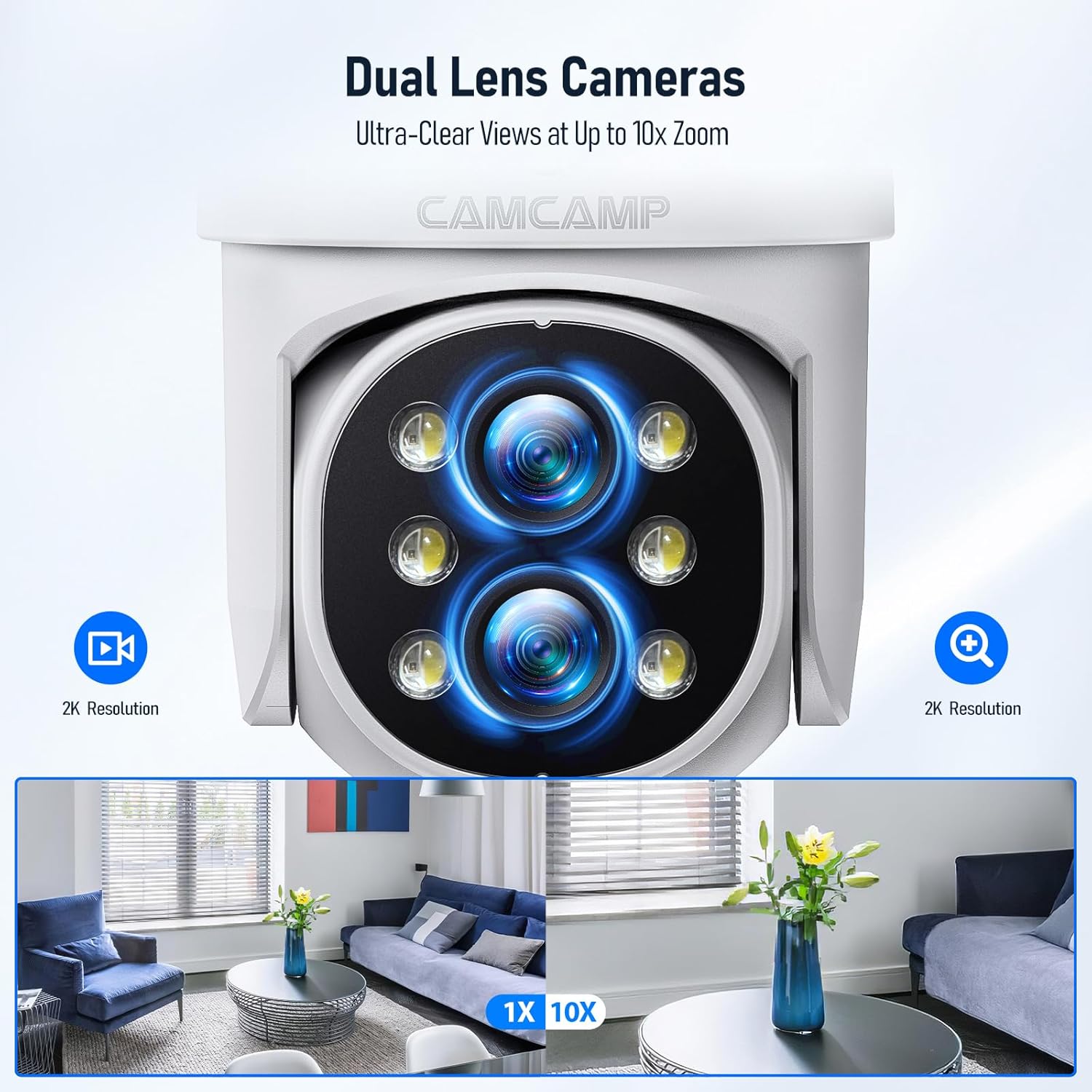 Camcamp Wireless Security Camera System with Monitor,10x Zoom 5MP Dual Lens Security Camera Outdoor with Night Vision,Motion Detection,Expandable 10CH 4K NVR.for Home Surveillance Kits Indoor/Outdoor