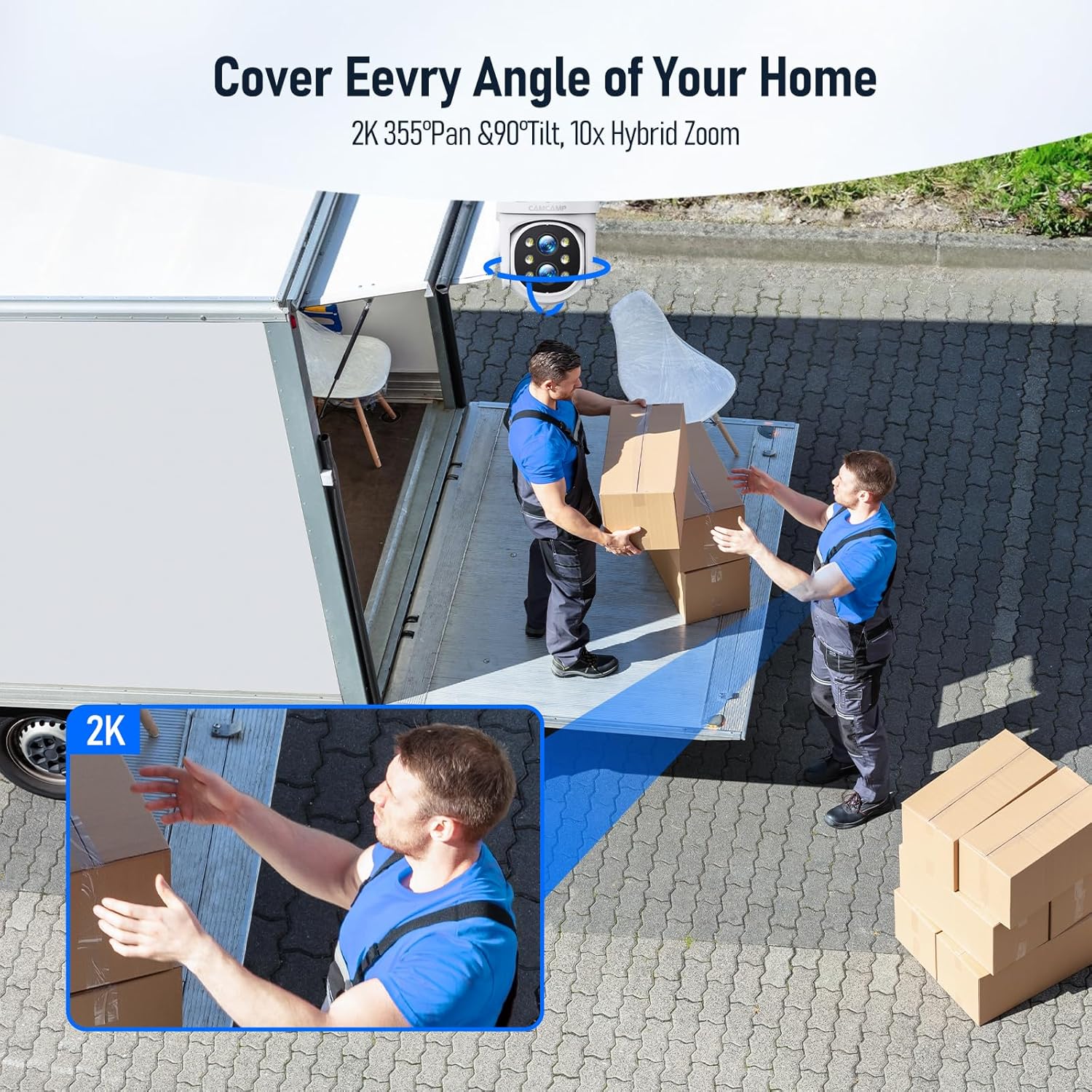 Panoramic Tracking + Details Cappture:Our Home Security Camera System adopt Professional gimbal dual-lens design supports 355°horizontal rotation + 90°vertical rotation and 10x hybrid zoom. Provides wide-angle coverage and clear close-ups, and the telephoto lens accurately zooms in on key areas for more efficient monitoring.