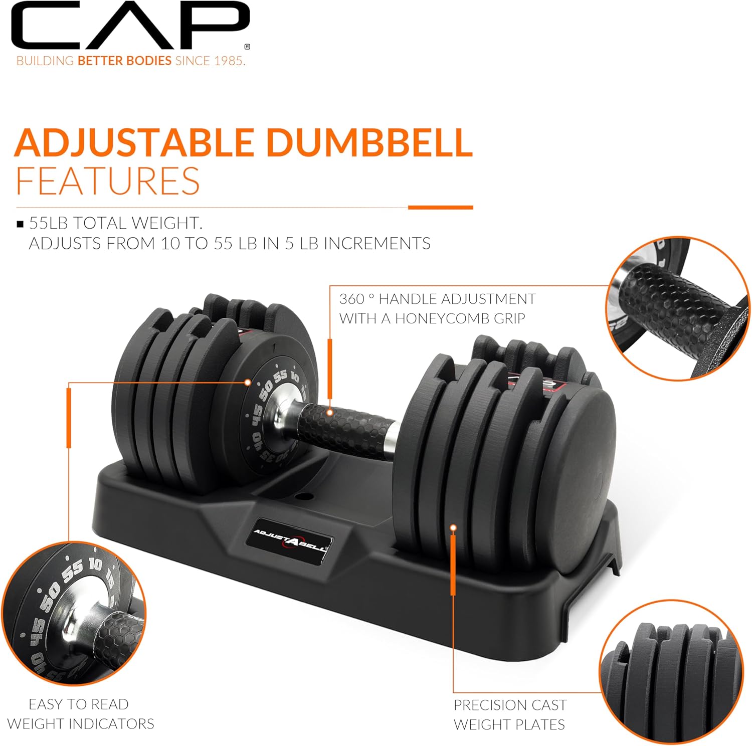 Specification: CAP Barbell ADJUSTABELL Adjustable Round Dumbbell Weights – Singles & Pairs | 12.5 lb, 25 lb & 55 lb | Multiple Handle Options