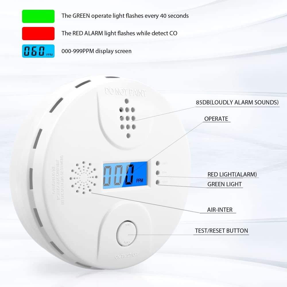 Carbon Monoxide Detector,CO Alarm Detector with Digital Display and Sound Alarm for Home 2pcs