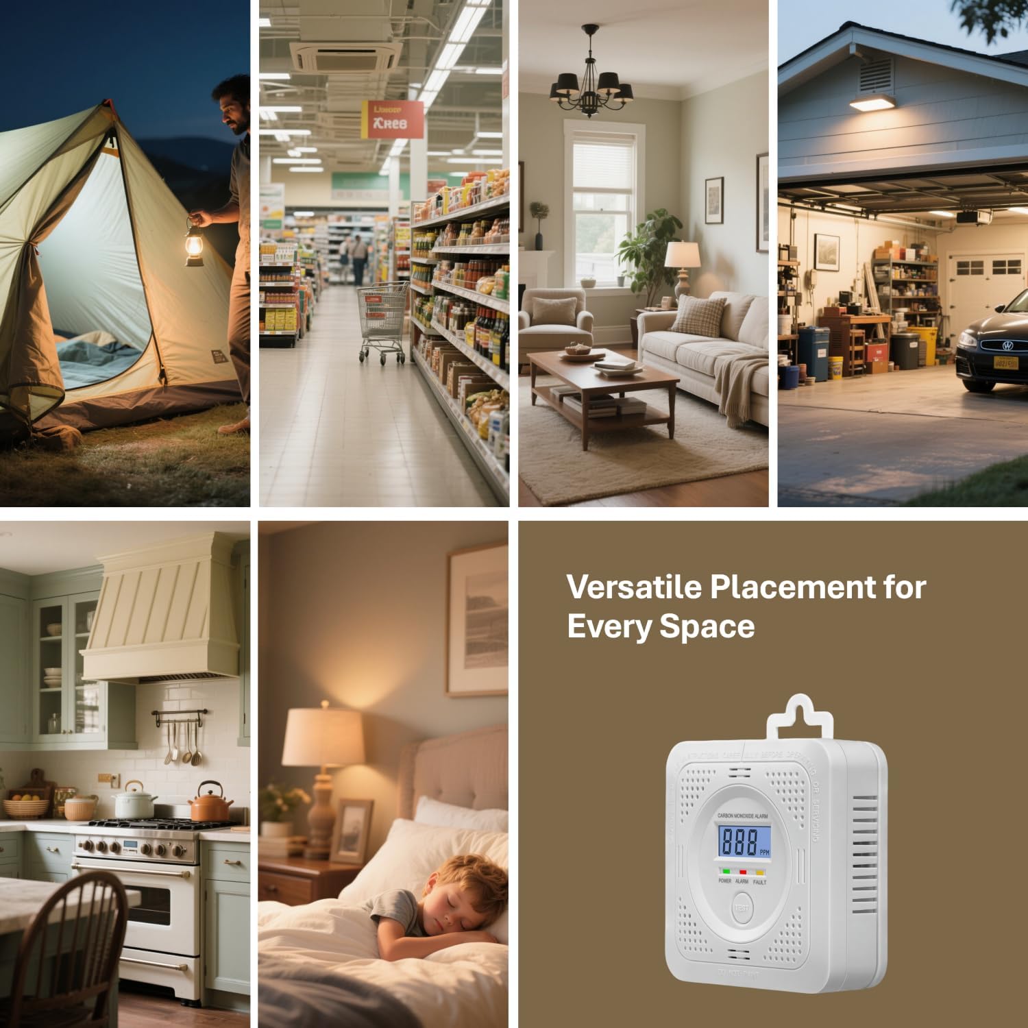 【Versatile Placement for Every Space】Compact and lightweight, this detector installs in seconds on walls, shelves, or countertops. Use it in kitchens, garages, trailers, dorm rooms, or workshops—anywhere fuel-burning devices exist. Combines travel-ready portability with robust home safety, making it a must-have for Airbnb hosts, parents, and outdoor enthusiasts.