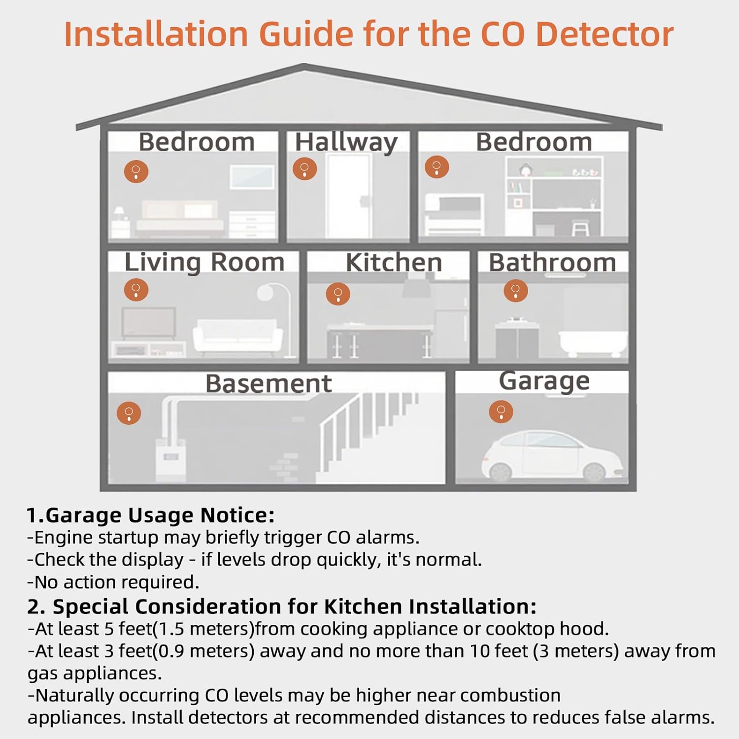 Easy to Clean: Flame-retardant PC material combined with a polished surface makes it easy for daily cleaning. To preserve the CO detector’s superior performance and enhance detection accuracy, install it in clean, dry locations.