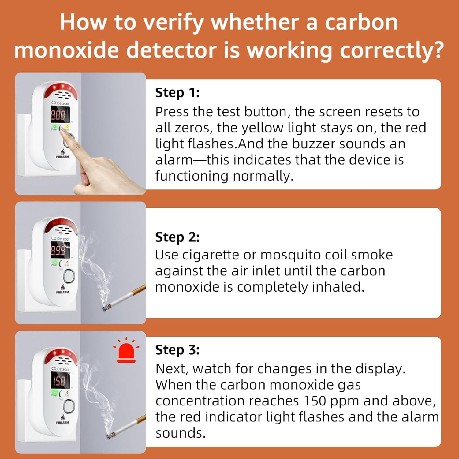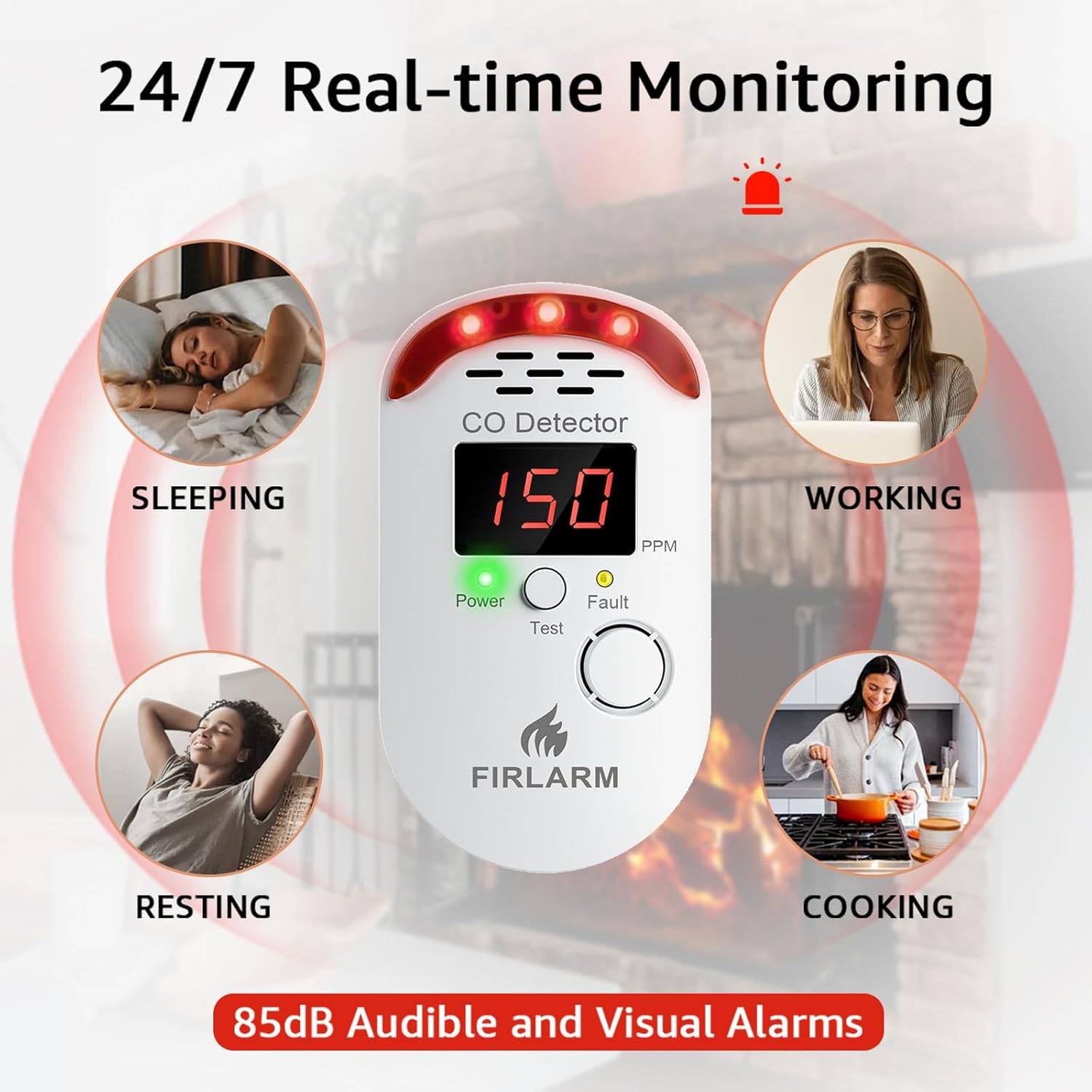 Audible and Visual Alarm: The LED digital display provides accurate readings of carbon monoxide concentration. When it exceeds the standard (up to 150ppm), the alarm will sound at up to 85dB and flash a red light, ensuring it can be immediately noticed even in noisy environments or during deep sleep.