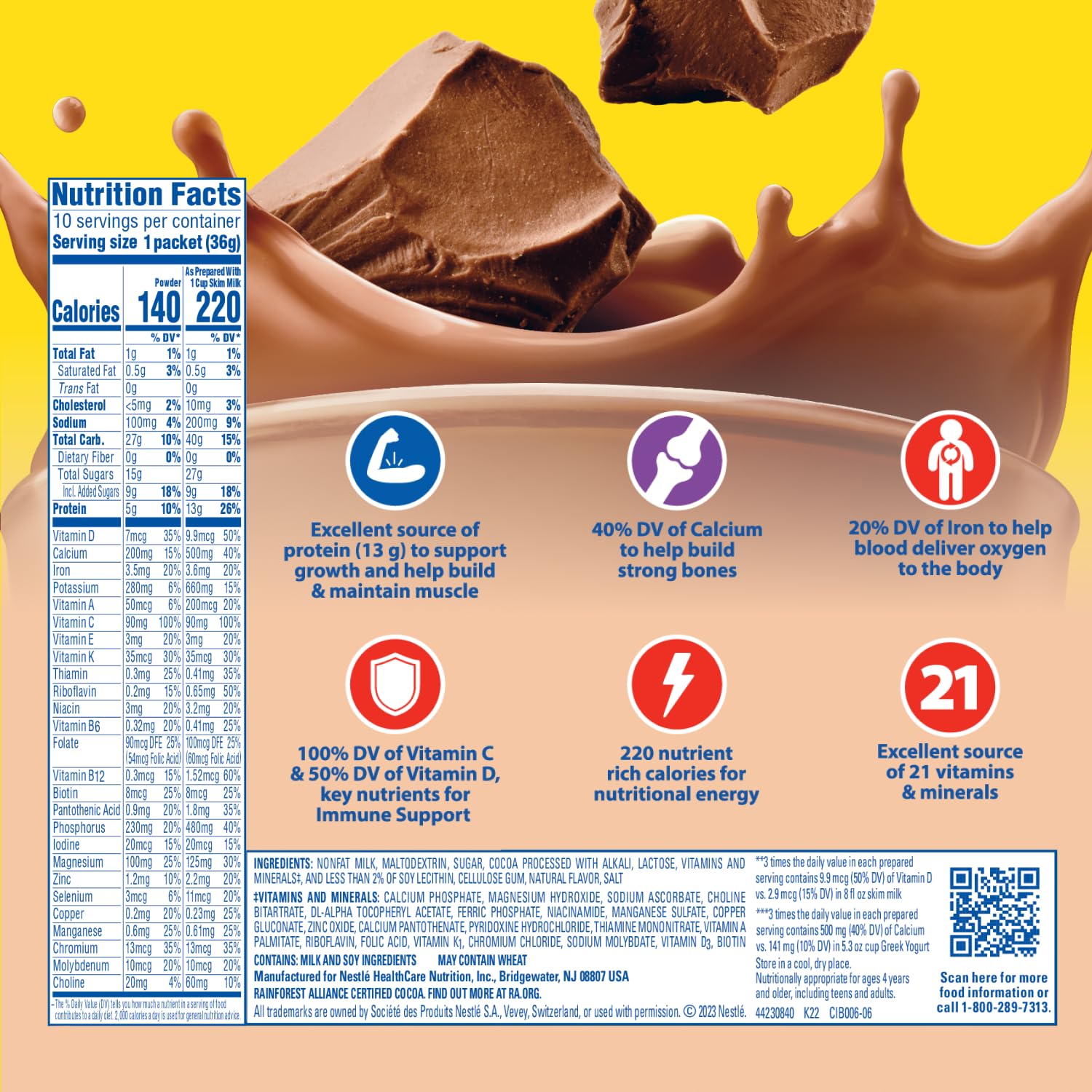 Carnation Breakfast Essentials Powder Drink Mix Rich Milk Chocolate, 10 Count Box of 1.26 Ounce Packets (Pack of 6)