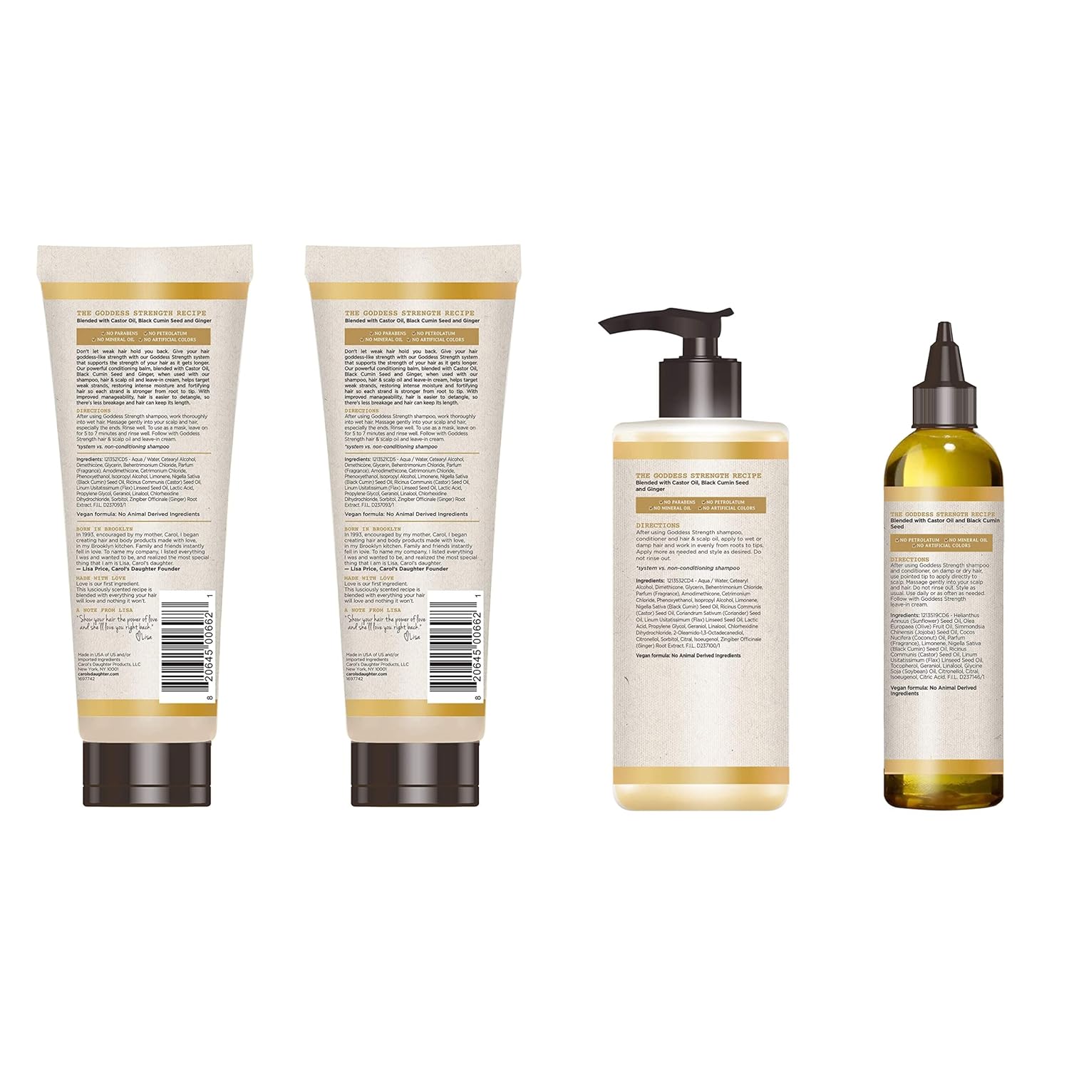 Goddess Strength Hair Care Kit: Being a Goddess is all about strength, our founder chose ingredients like Castor Oil and Black Cumin Seed for Goddess Strength to fortify weak hair making it strong and beautiful. Our hair care set includes 4 items