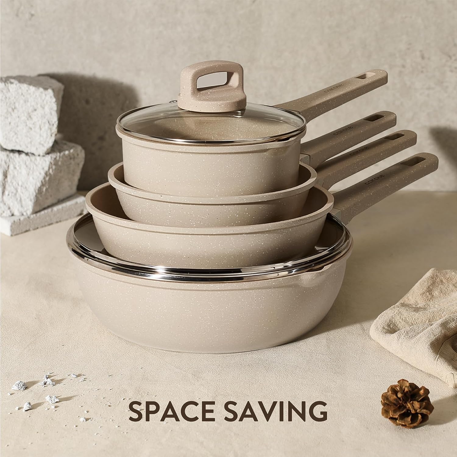 Specification: CAROTE 10Pcs Pots and Pans Set Nonstick, Induction Cookware Sets, NonStick Cooking Set, Kitchen Pots and Pans Set with Stay-Cool Handles, PFOA Free