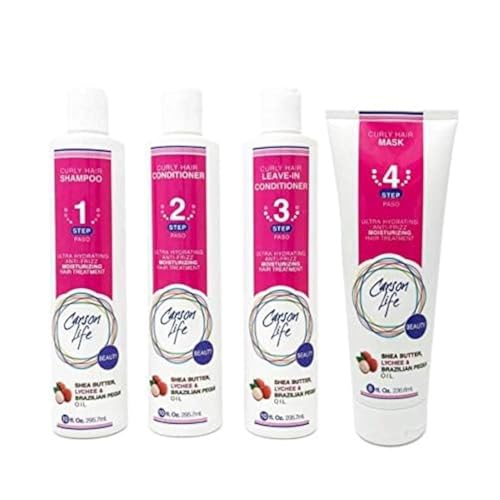 CARSON LIFE 4 Stage Hair Care System Kit For Curly Hair (Shampoo, Conditioner, Leave In Conditioner & Curly Hair Mask) – Paraben and Sulfate Free