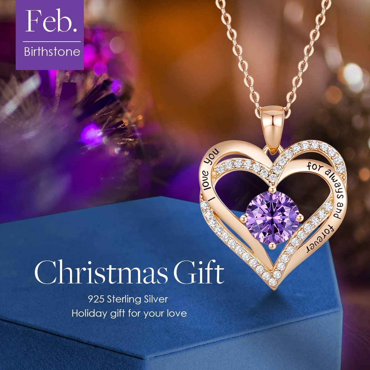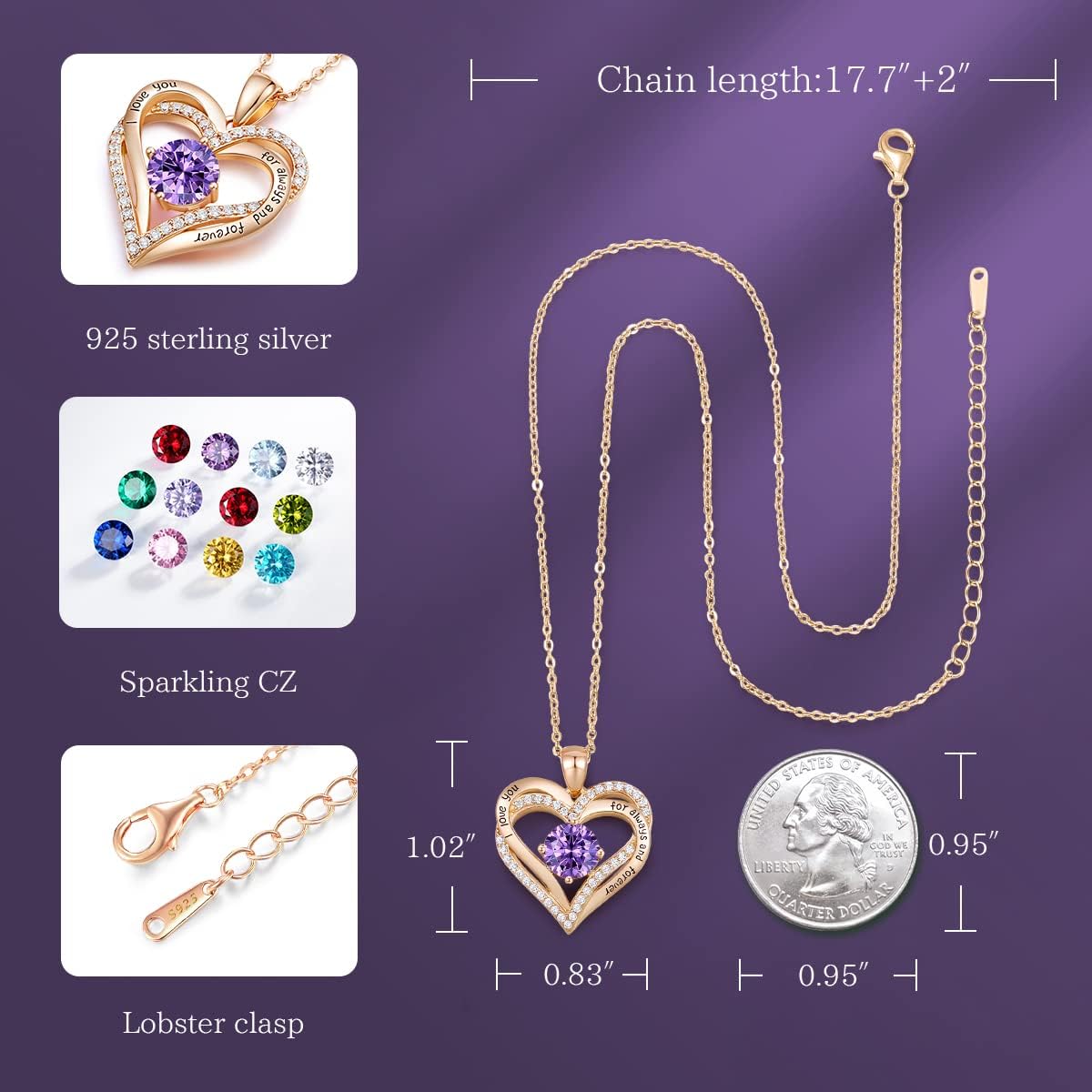 CDE Valentine’s Day Gift Forever Love Heart Necklaces for Women, Wedding Anniversary, Birthday Mothers Christmas Day Gifts for Mom, Mother, Wife, S925 Silver Jewelry with Birthstone Pendant