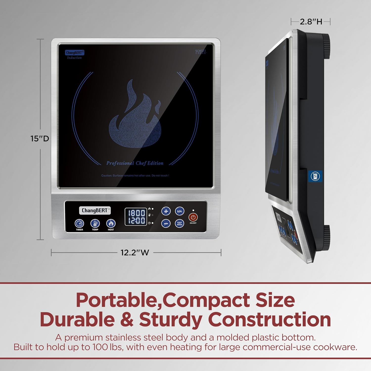 ChangBERT Induction Cooktop NSF Certified Professional Chef Edition Stove, 1800W Commericial Induction Burner with Schott Glass, Large Heating Coil Electric Hot Plate for Restaurant Hotel Food Station