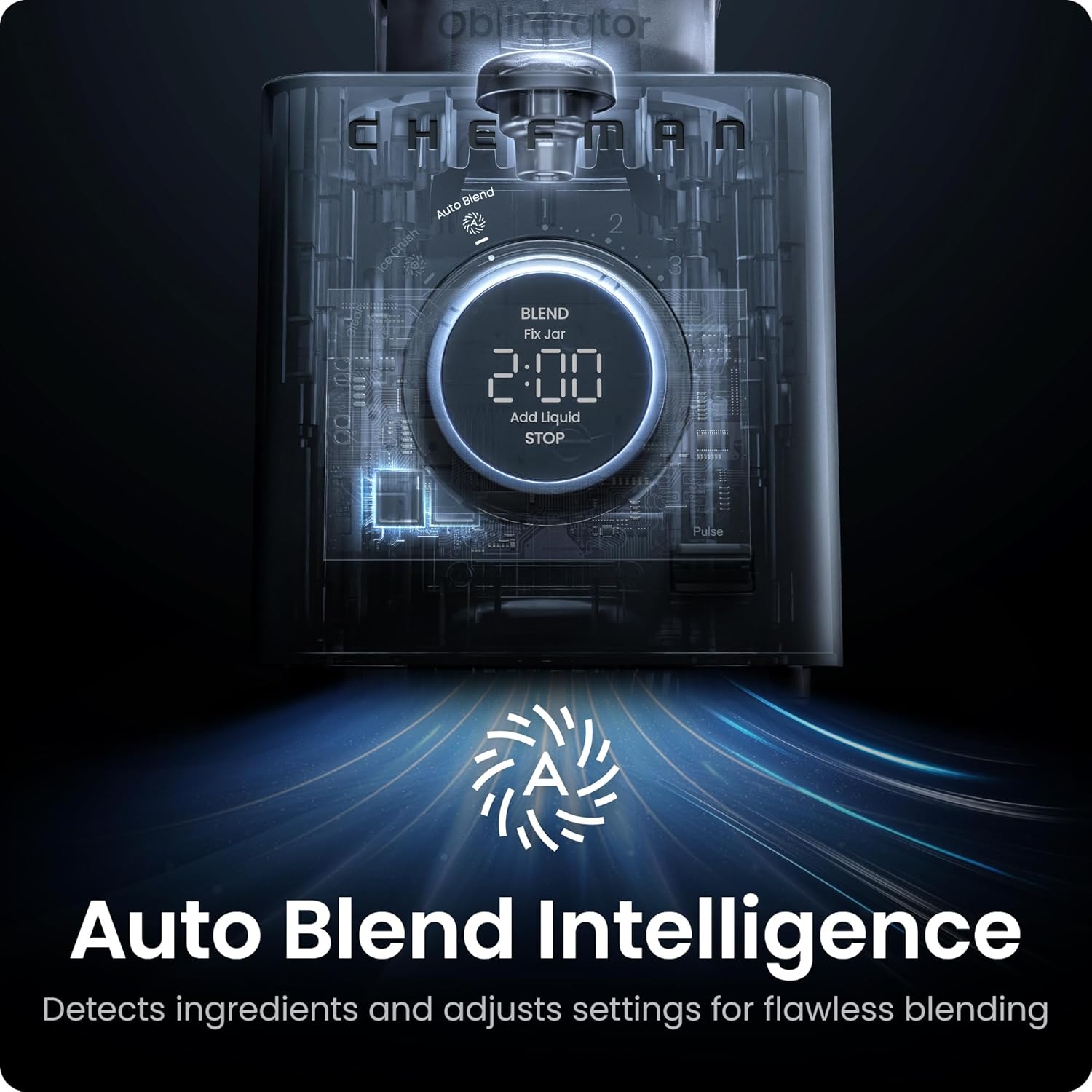 Chefman Obliterator 48 oz Countertop Blender for Smoothies, 1380W Motor to Crush Ice, Nuts, and Frozen Fruit with Stainless Steel Blade, Auto Blend Function, Includes Tamper and Scraper