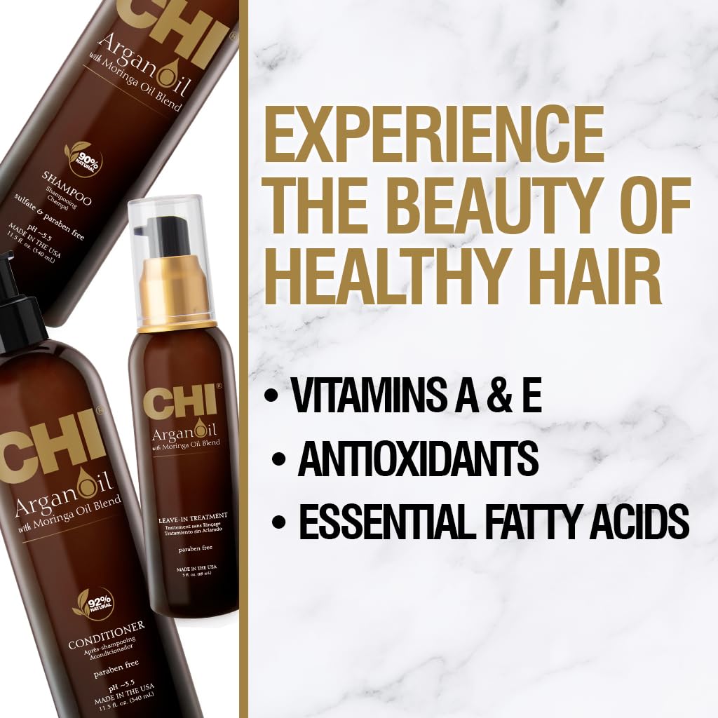 COMPLETE HAIRCARE SYSTEM: Immerse your hair in the benefits of argan oil; it’s known for its properties that enhance shine, smoothness, and overall hair health. This kit features CHI Argan Oil Shampoo, Conditioner, and a Hair Oil Leave-In Treatment.