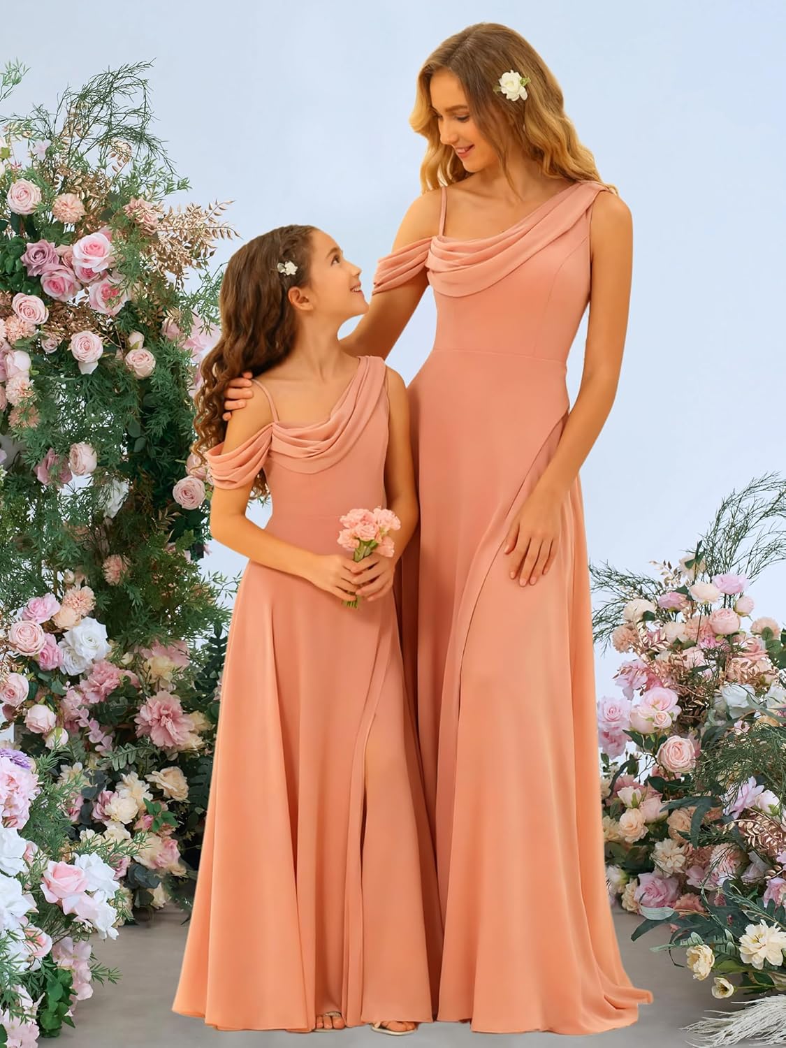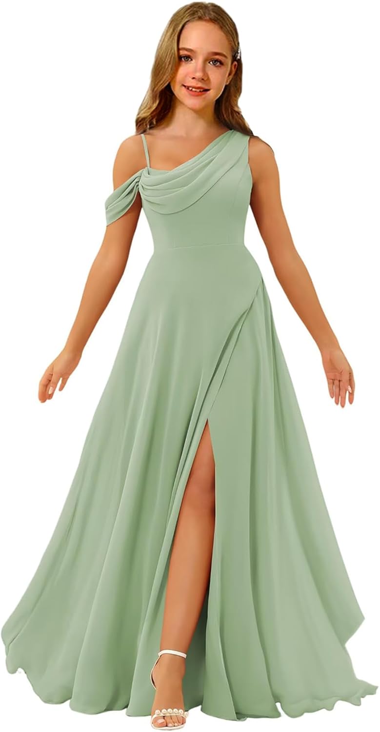 Chiffon Junior Bridesmaid Dress One Shoulder A Line Flower Girl Formal Dresses with Ruffles UJR121