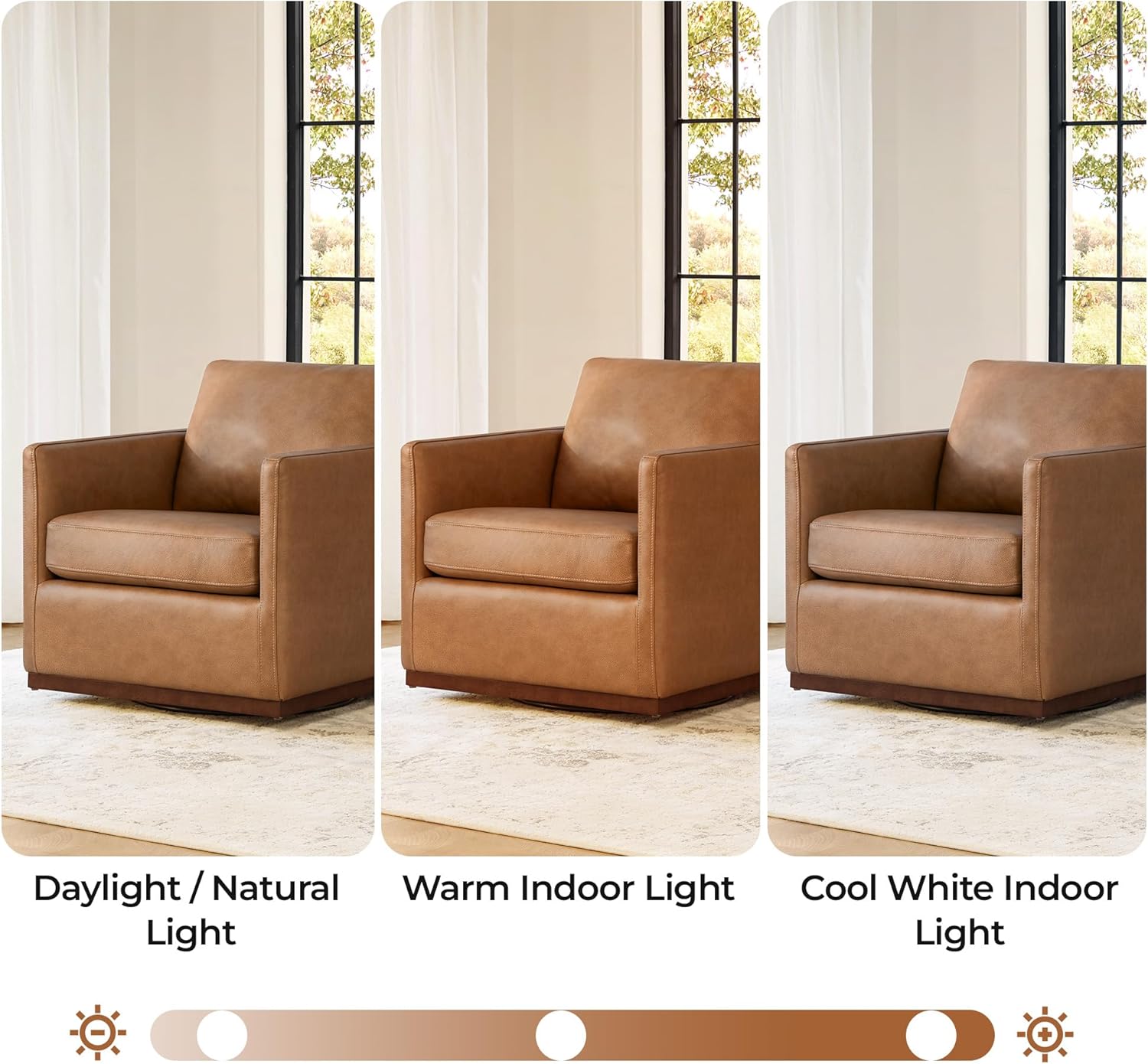 CHITA Genuine Leather Swivel Accent Chair, FSC Certified Mid Century Modern Arm Chair for Living Room and Bedroom, Fully Assembled, Saddle