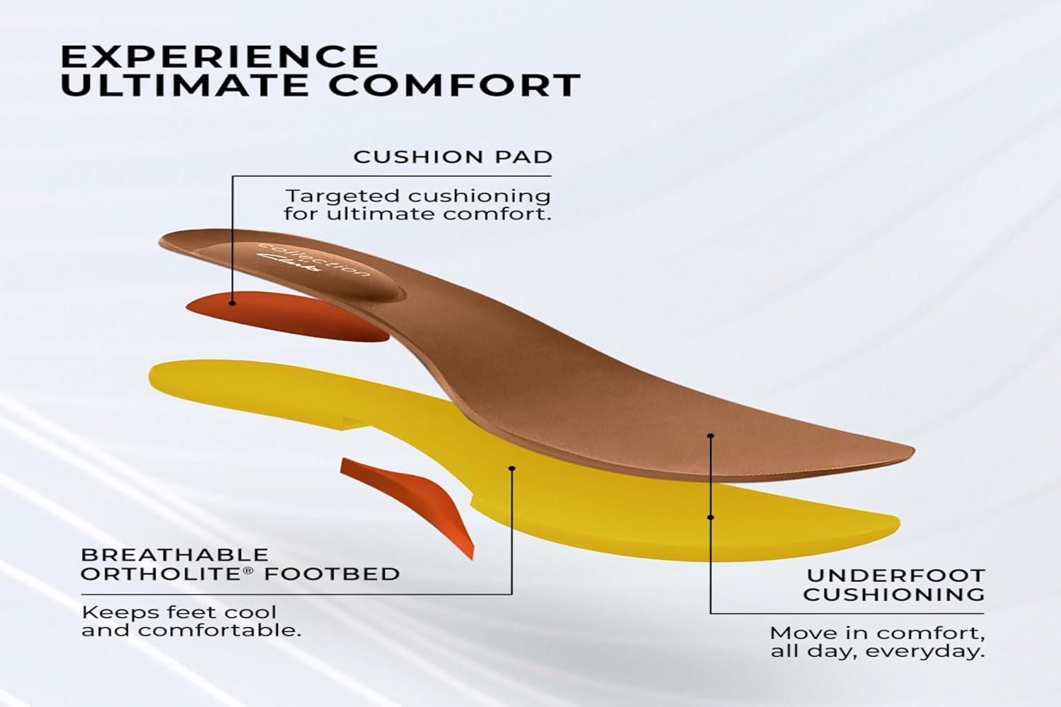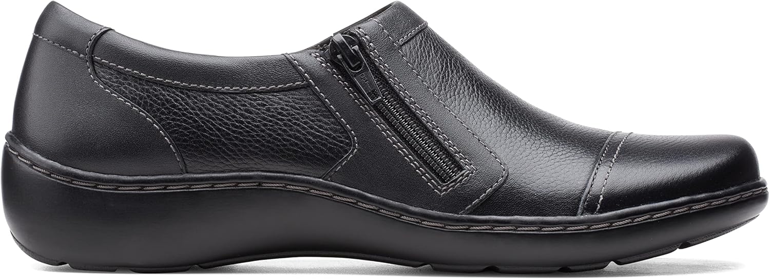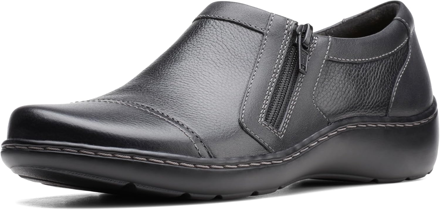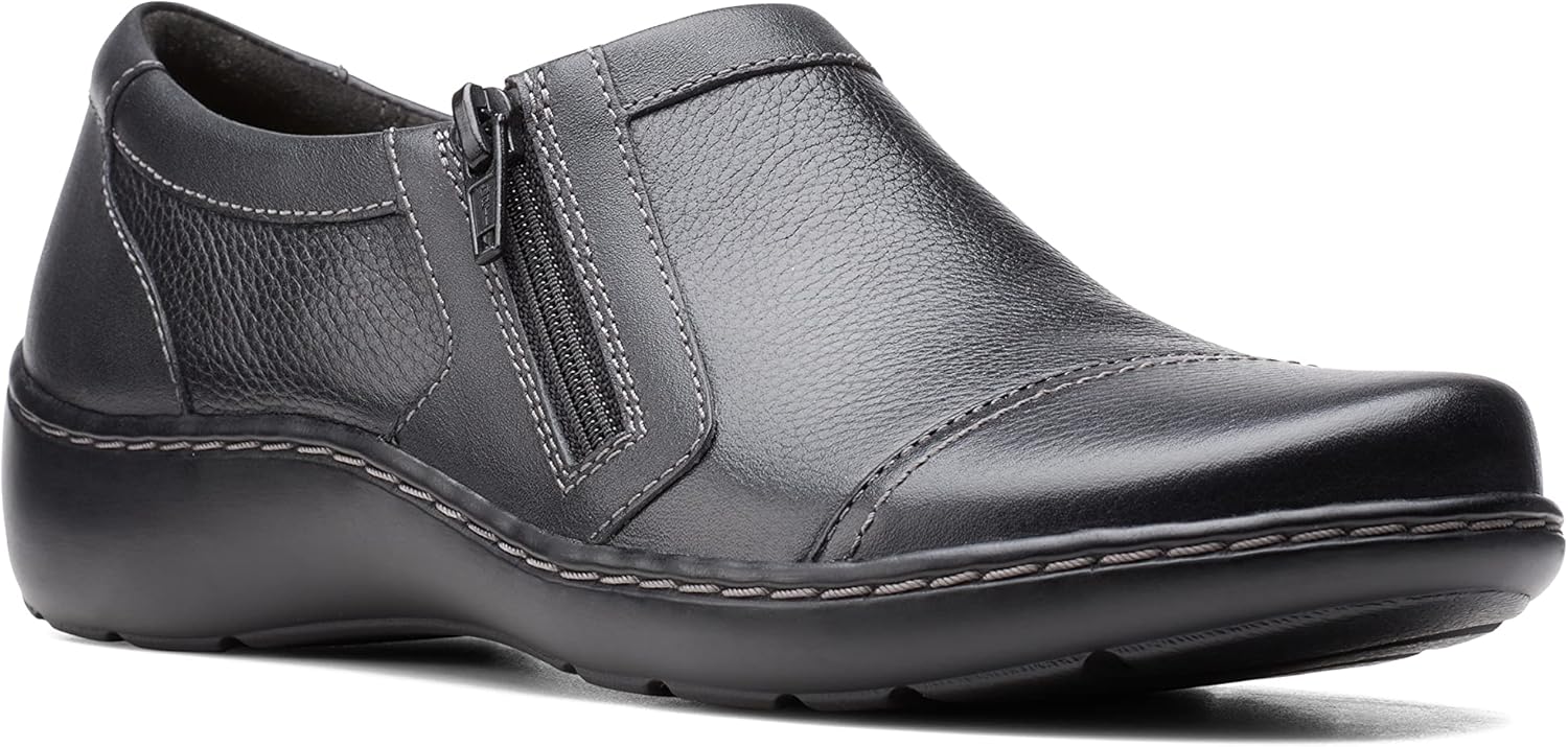 Clarks women Cora Giny: An upper made from full grain leather and a vibrant, printed textile elevates the Cora Giny casual slip-on style. A subtle zipper closure allows for an easy yet secure fit and, its Ultimate Comfort features include an Ortholite footbed that wicks away moisture and reduces the impact of each step.
