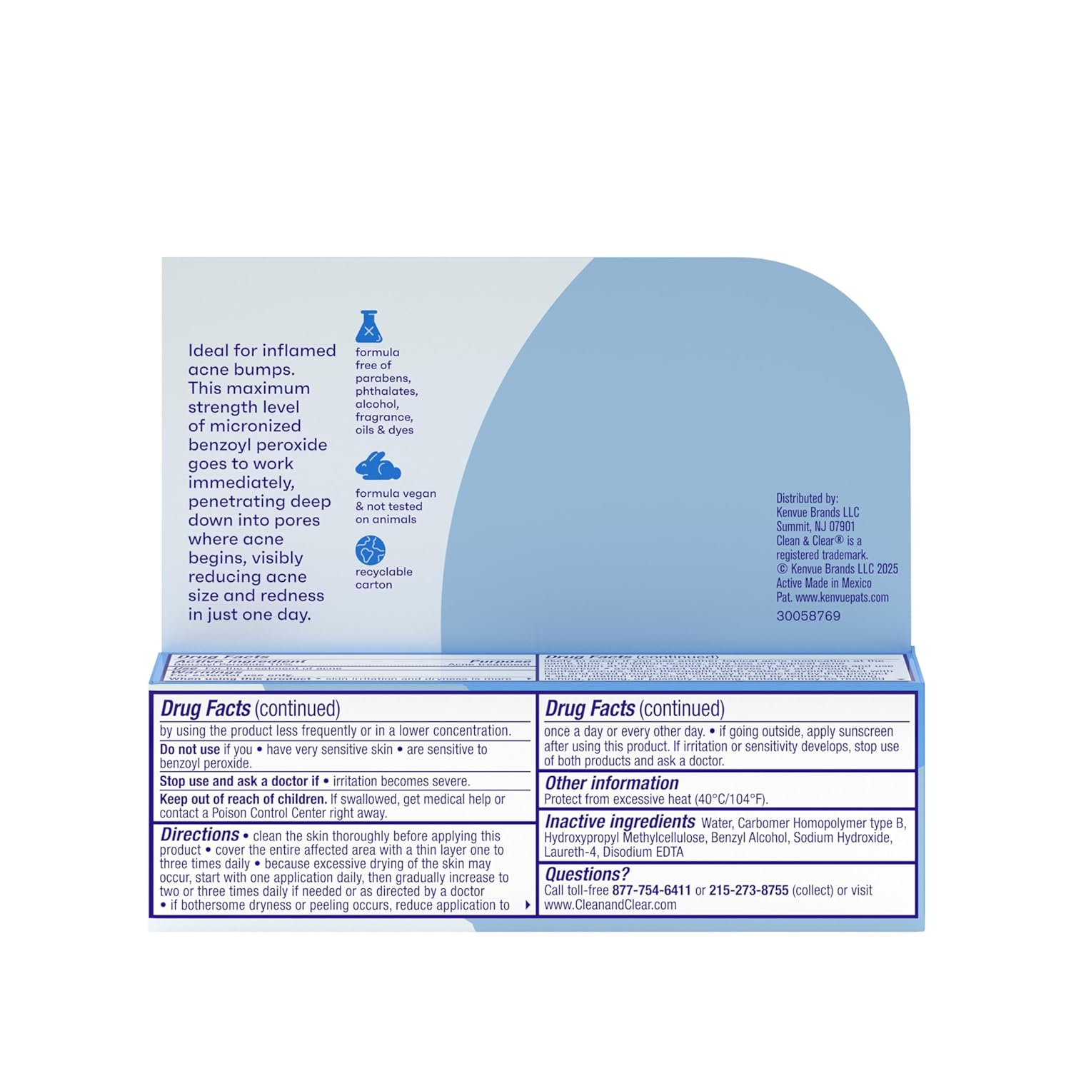 Clean & Clear Persa-Gel 10 Oil-Free Acne Spot Treatment with Maximum Strength 10% Benzoyl Peroxide, Topical Pimple Cream Visibly Reduces Acne in One Day, Fragrance-Free, 1 fl. oz