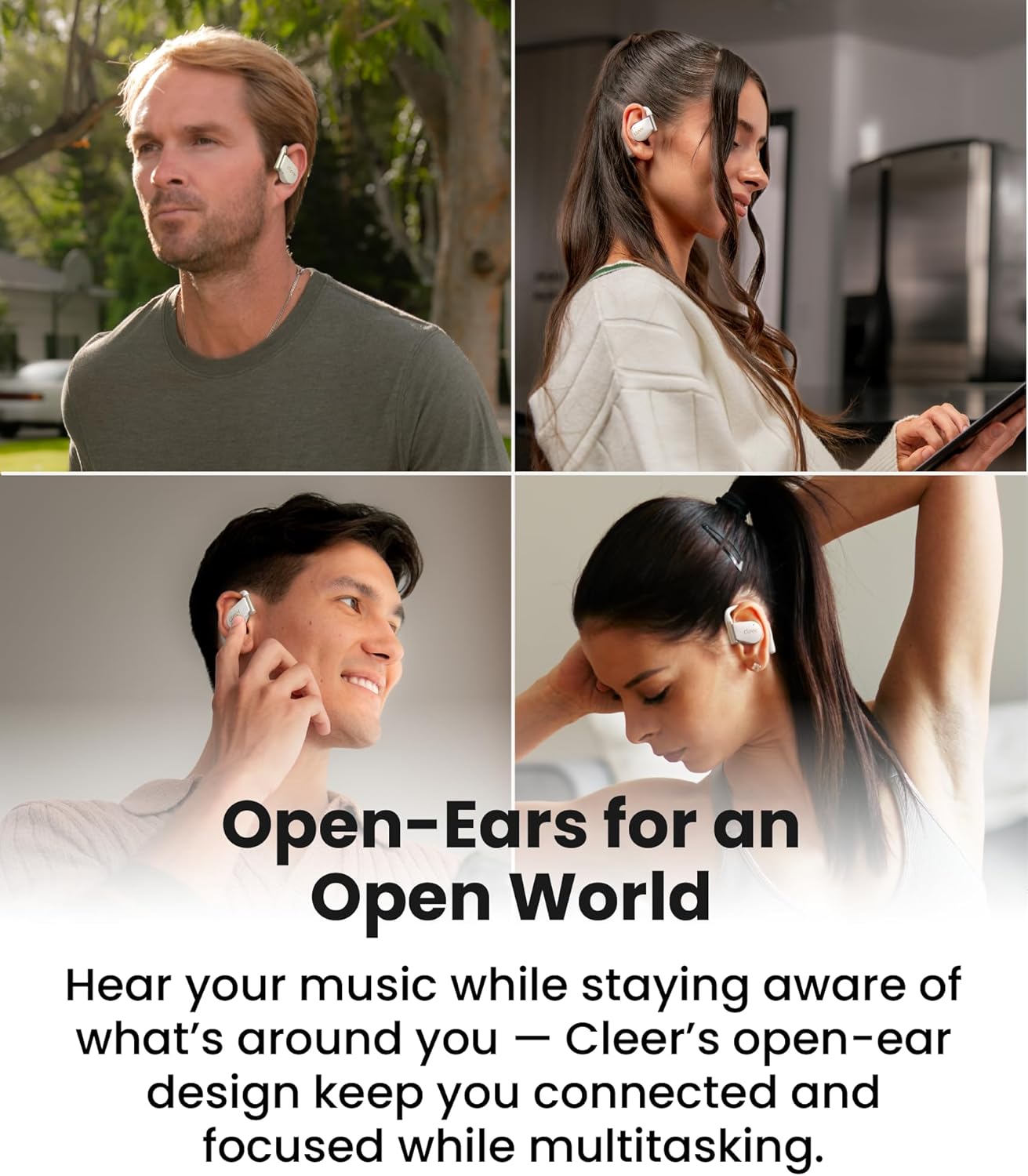 34-Hour Battery & Fast Charging:9 hours per charge + 25H via charging case solve battery anxiety. The Cleer Open Ear Earbuds also support a 10-minute quick charge that provides 3 hours of playtime, keeping up with your busy schedule.