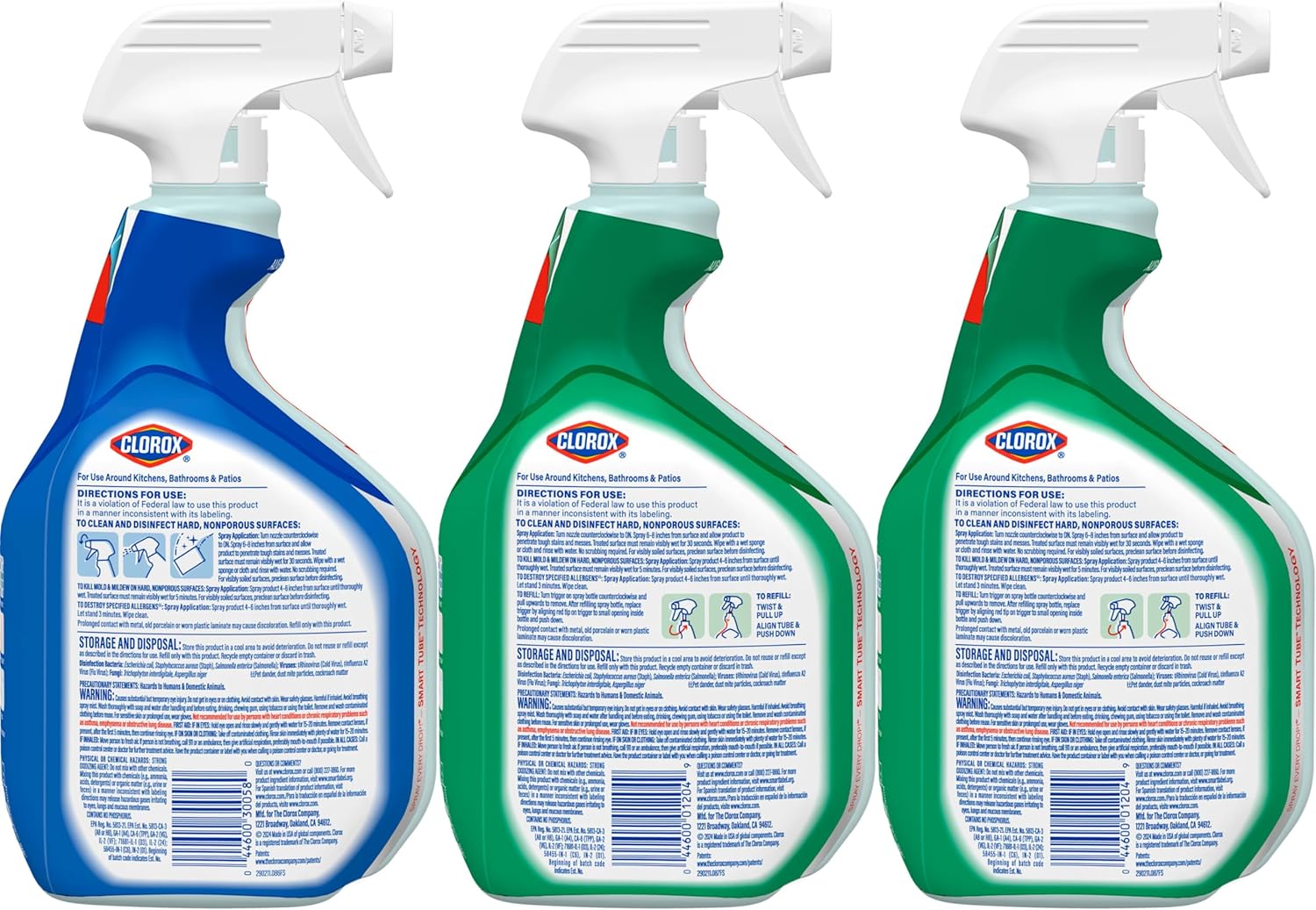 DISINFECTING CLEANER: Three 32 fl. oz. spray bottles of Clorox Clean-Up Multi-Surface Cleaner with Bleach, including two bottles of Original and one bottle of Rain Clean scent disinfecting spray
