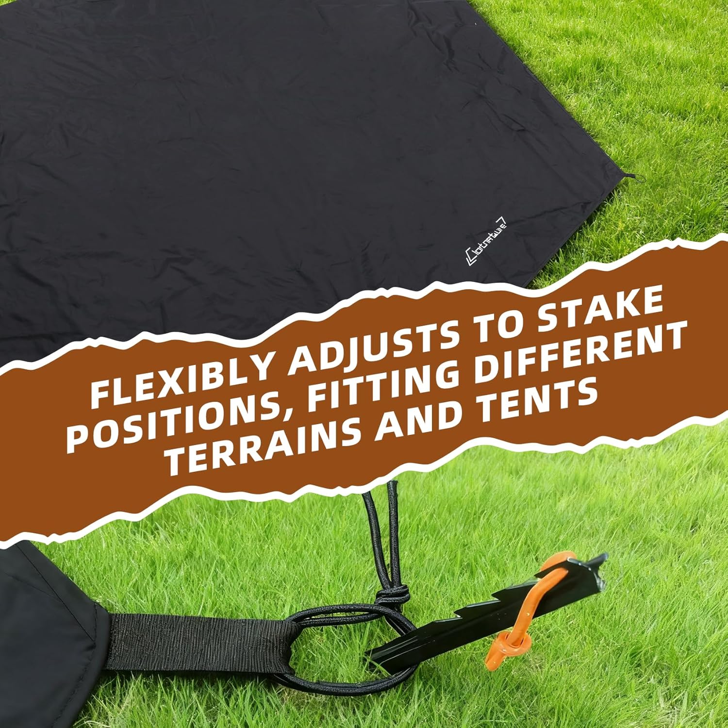 FLEXIBLE ELASTIC BAND DESIGN: Each corner of the floor mat has a removable elastic band, made to secure stakes or ropes (Note: Stakes not included). When in outdoors, even without ropes or stakes, these bands do more than just hold the mat in place—you can easily fasten them to nearby fixtures (camp chairs, trees, etc.) for easy setup
