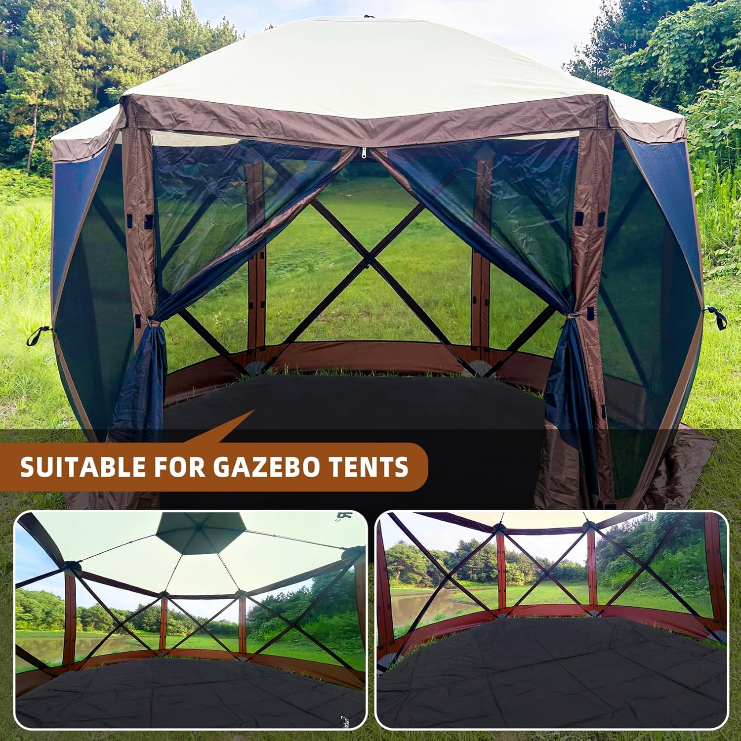 HEXAGONAL LARGE-SIZE DESIGN: This hexagonal ground sheet is tailor-made for gazebos and bubble tents—matching their classic hexagonal shape for a perfect fit. It also works seamlessly with most other tent styles, thanks to its roomy 12ft x 12ft area. Plus, it doubles as an ideal floor mat for 6-8 person outdoor camping trips, spacious enough to keep everyone’s gear organized and feet dry