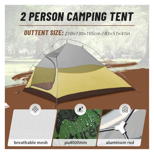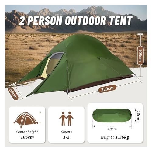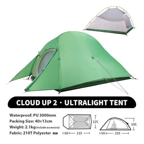 Cloud Up 1 2 3 Person Camping Tent Ultralight Waterproof Trekking Tents Hiking Backpacking Shelter Tent Travel Tent(Cloud2 Green)