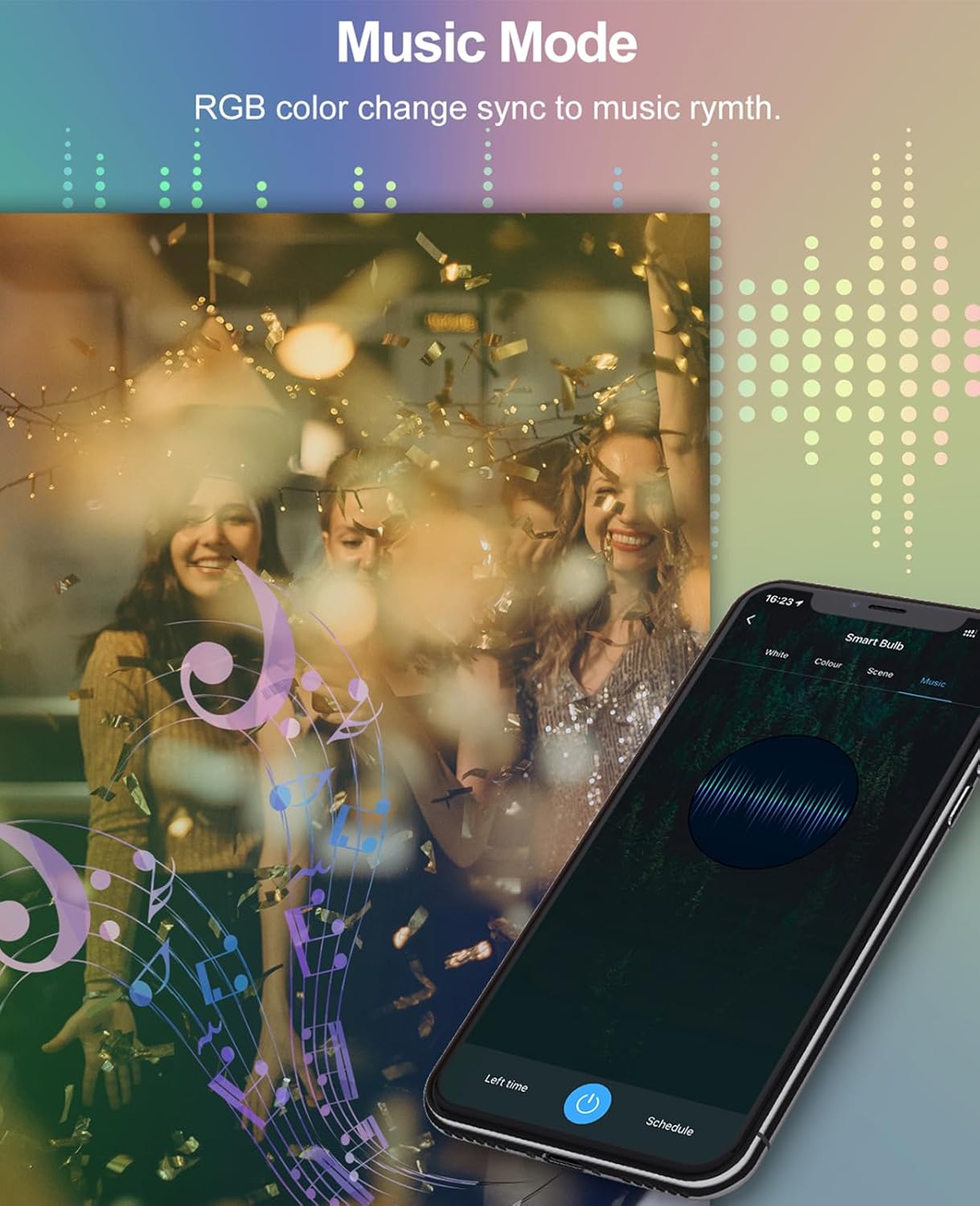 ♦Simple and Wide Application rgb light bulbs: Setting programs for the smart led light bulb is easy. What you need is just 2.4 Ghz Wi-Fi and download free APP “Smart Life”. The smart led bulb is for celling fan, bedroom, living room, kitchen, bar, cafe, office, etc.