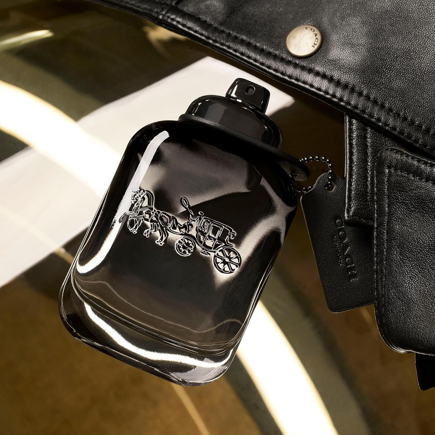 The design of the bottle is emblematic of the Coach brand and features several iconic codes: turnlock, hangtag, carriage logo engraving.