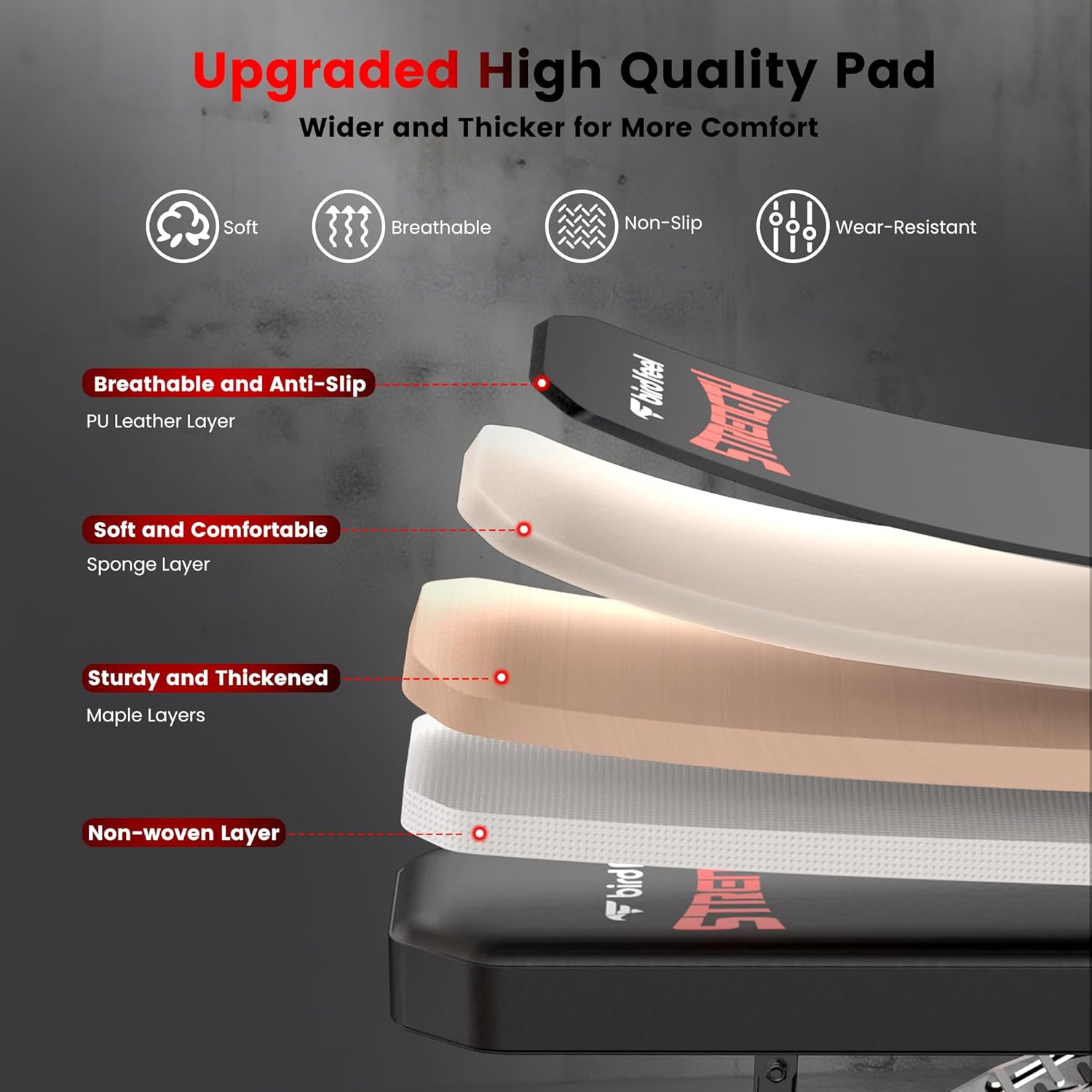 【Premium Leather Upholstery】Covered in soft, odor-resistant, non-slip, and wear-resistant leather, providing long-lasting comfort and hygiene on your workout bench for home gym through countless training sessions.