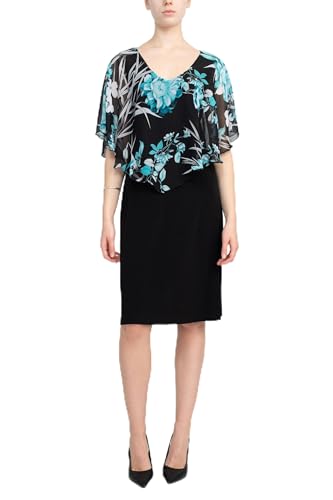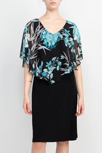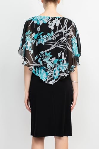 Connected Apparel V-Neck Floral Print Cape Sleeve Chiffon & ITY Dress Seafoam / 8