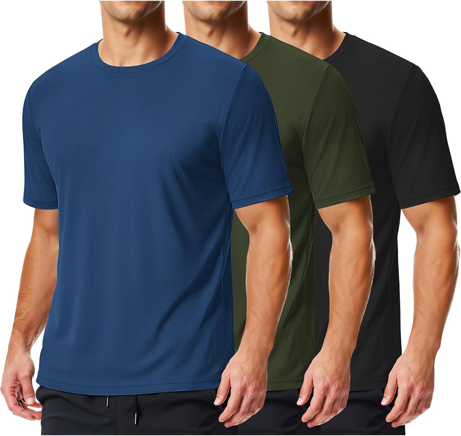 COOFANDY 3 Pack Men’s Athletic T-Shirts Short Sleeve – Quick Dry Moisture Wicking Workout Shirts for Running, Gym, Casual