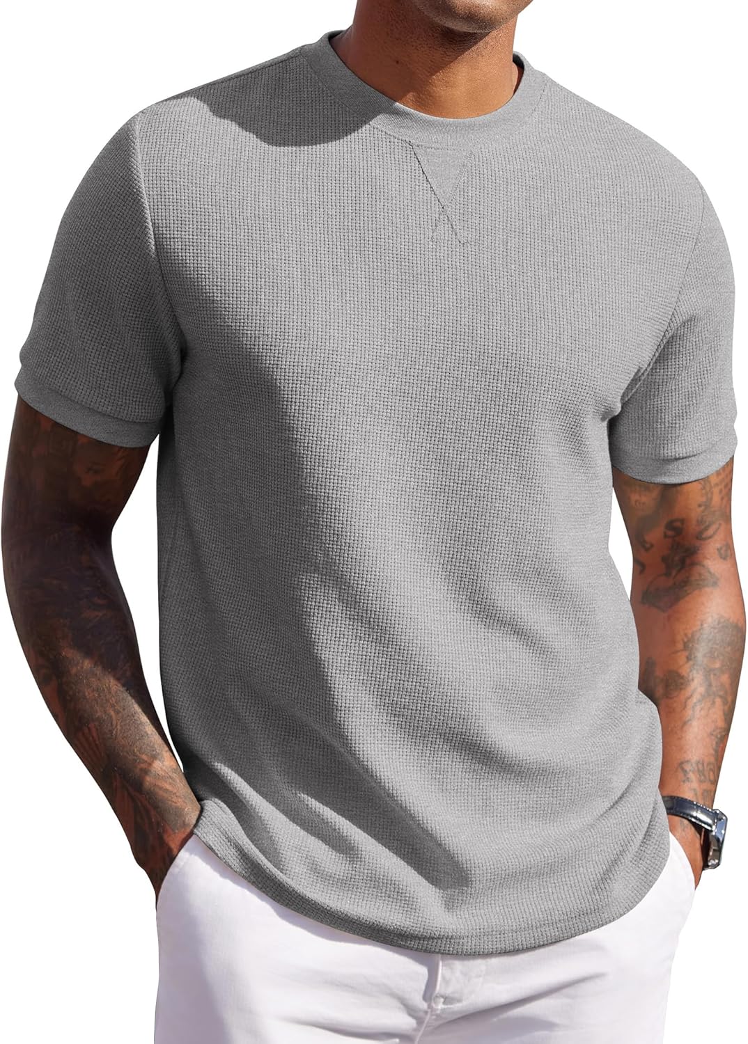 COOFANDY Men’s Waffle T-Shirts Short Sleeve Casual Crew Neck Shirt Cotton Summer Plain Pullover Tees